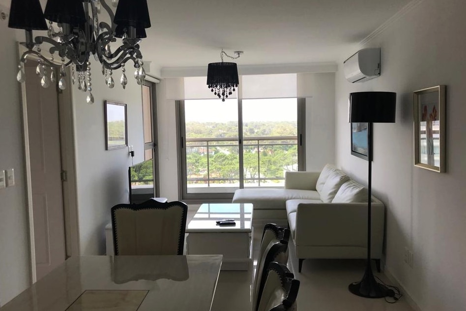 Central apartment, French neoclassical style, in the most strategic point of Punta del Este, in the Design District, a few meters from Punta Shopping. With excellent views of Playa Brava, Playa Mansa and the Forest. Unmissable amenities: 2 heated pools, one open and one closed, 3D cinema, barbecues, spa with saunas, relaxation room, aerobics, games and massages, gym, beach service with transfer, children's games, laundry, concierge, WIFI and maid service.