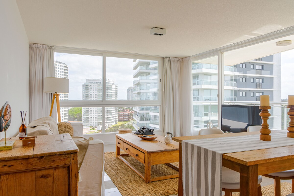 Designer apartment, super bright and quiet, making it an ideal space for both leisure and work. Located in Gala Vista, one of the most exclusive residential complexes in Punta del Este. Unbeatable location, close to the beach and surrounded by numerous bars, restaurants, and shops. The complex offers 24-hour security and full amenities: indoor and outdoor swimming pools, gym, laundry room, tennis court, ping-pong and pool tables, micro cinema, coworking lounge, and more.
