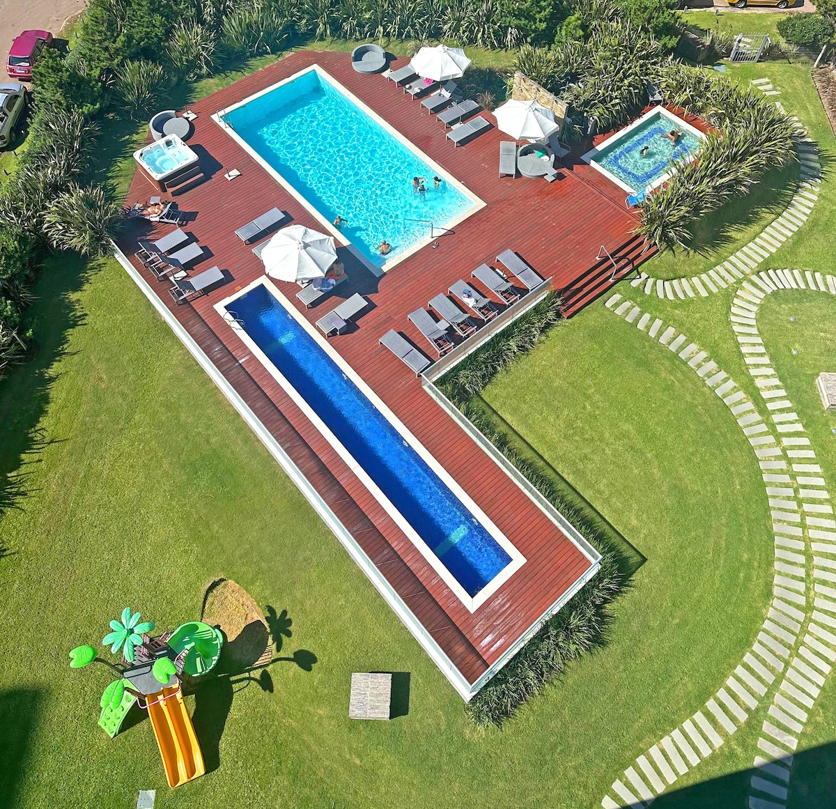 Diviértete en familia o con amigos en este alojamiento con múltiples servicios, entre los que se encuentran piscina interior y exterior, sala de adultos, de adolescentes y de niños, microcine, gimnasio de última generación, cancha de fútbol 5 con cesped sintético, aro de basket, solárium con césped sintético y barbacoas con televisión por cable. Lamentablemente por experiencias pasadas, no se aceptan mascotas.