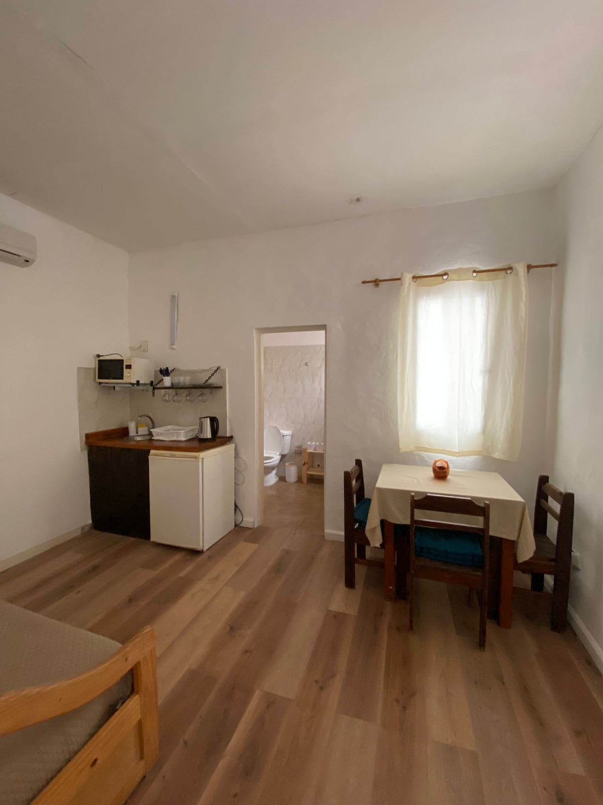 Habitación totalmente reformada, con amplios ventanales que dan una cálida iluminación natural. Vistas laterales. Disponible con cama doble queen o dos individuales, según solicitud. En primer o segundo piso, acceso por escaleras.