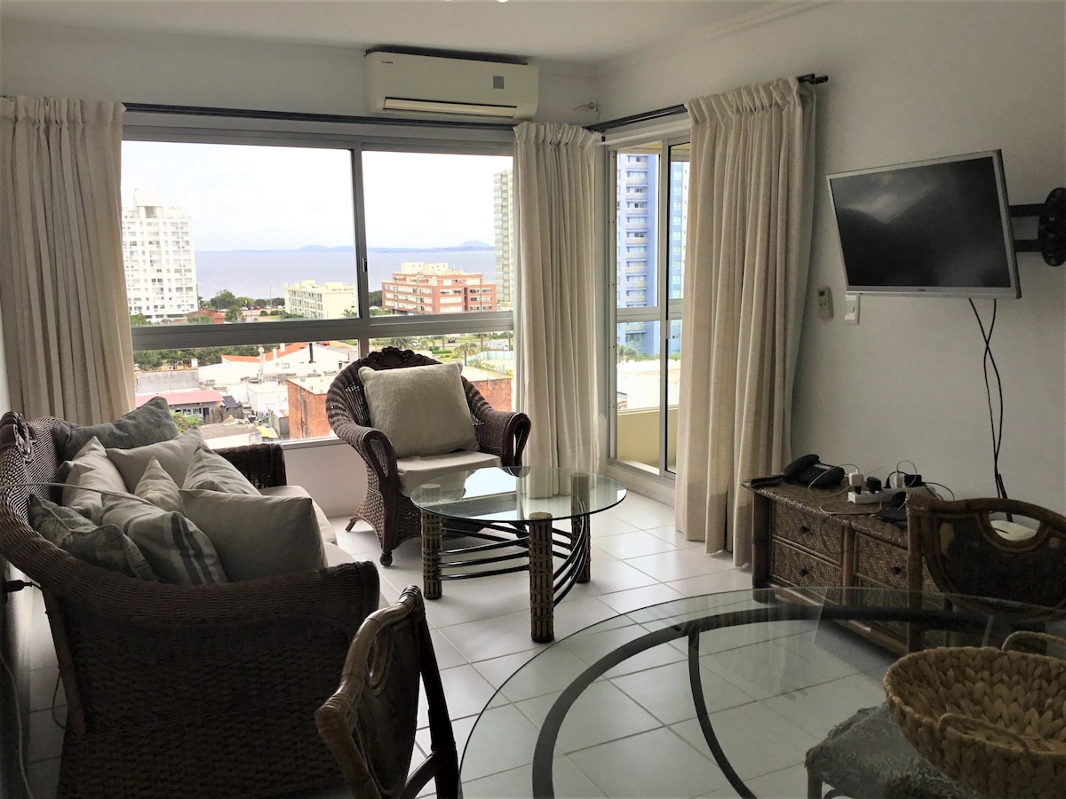 Precioso apartamento con vistas al mar a 120 metros de la playa, 1 dormitorio, living, baño, cocina y balcon, totalmente equipado y super comodo. El edificio cuenta con piscina climatizada interior con un jacuzzi , gimnasio, recepcion, dos piscinas exteriores y parrillero , un parrillero en la terraza con vista a la playa Mansa y la Brava y tambien parking. En una zona llena de restaurantes, mercados y mas. 😊