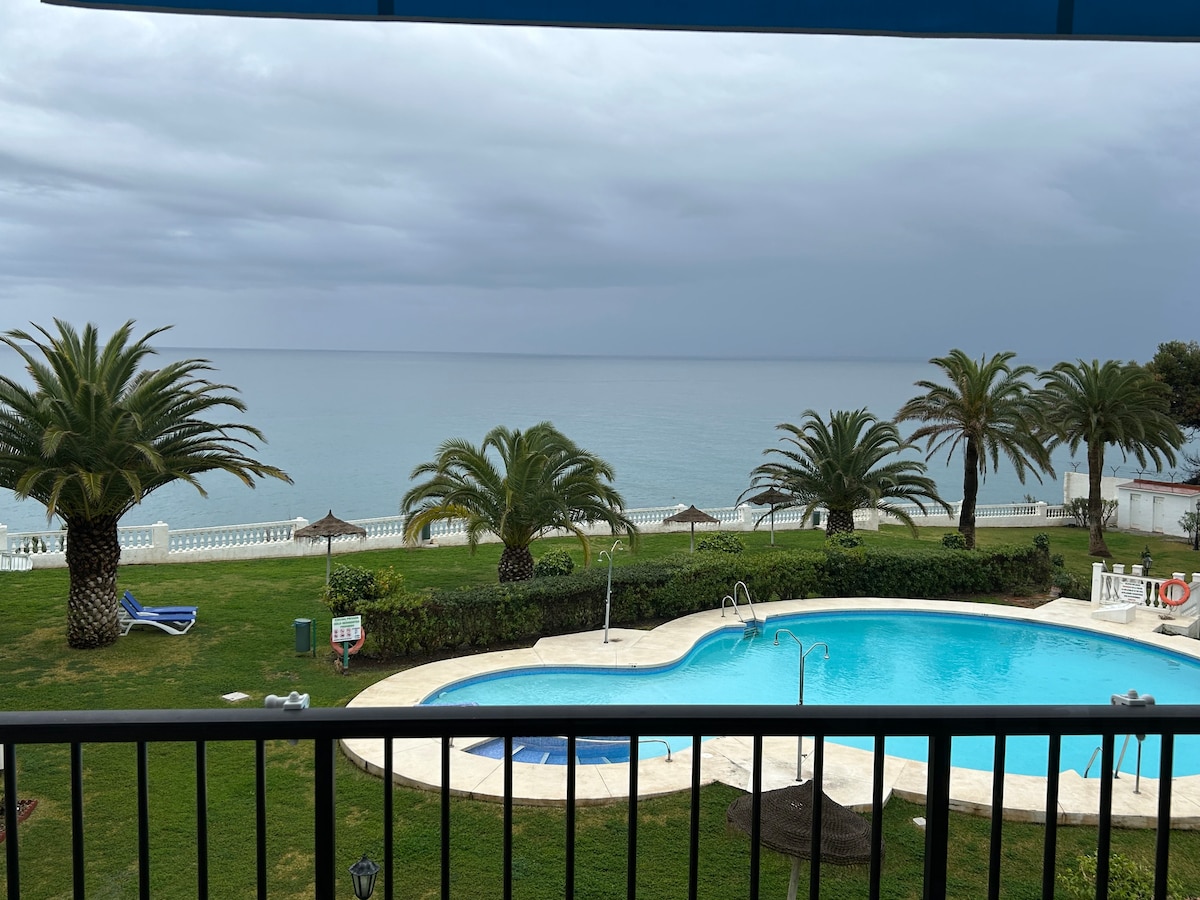Apartamento en primera línea de playa recién reformado, de 1 dormitorio, baño en suite, sofá-cama, terraza con vistas al mar y al jardín, piscina comunitaria abierta todo el año, Wifi y TV por cable gratuitos, situado en pleno centro de Nerja, a 3 minutos andando del Balcón de Europa, y de las playas de laTorrecilla y El Salón, pero en una urbanización tranquila. Ideal para una persona, parejas, con 1 niño. Totalmente equipado.