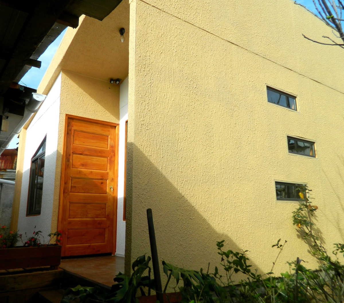 Bienvenidos a nuestro hogar, arrendamos un departamento anexo a la casa, totalmente independiente, cuenta con cocina americana, cama matrimonial, baño privado, wifi, tv, refrigerador y servicios basicos. Estamos en el cerro esperanza, un lugar priviligiado, ya que estamos entre viña del mar y valparaiso; a 10 min de centro de valparaiso y a 15 minutos del centro de viña del mar. Cercano a playas y a todos los atractivos que tiene la ciudad. Cuenta con facil acceso en transporte publico.