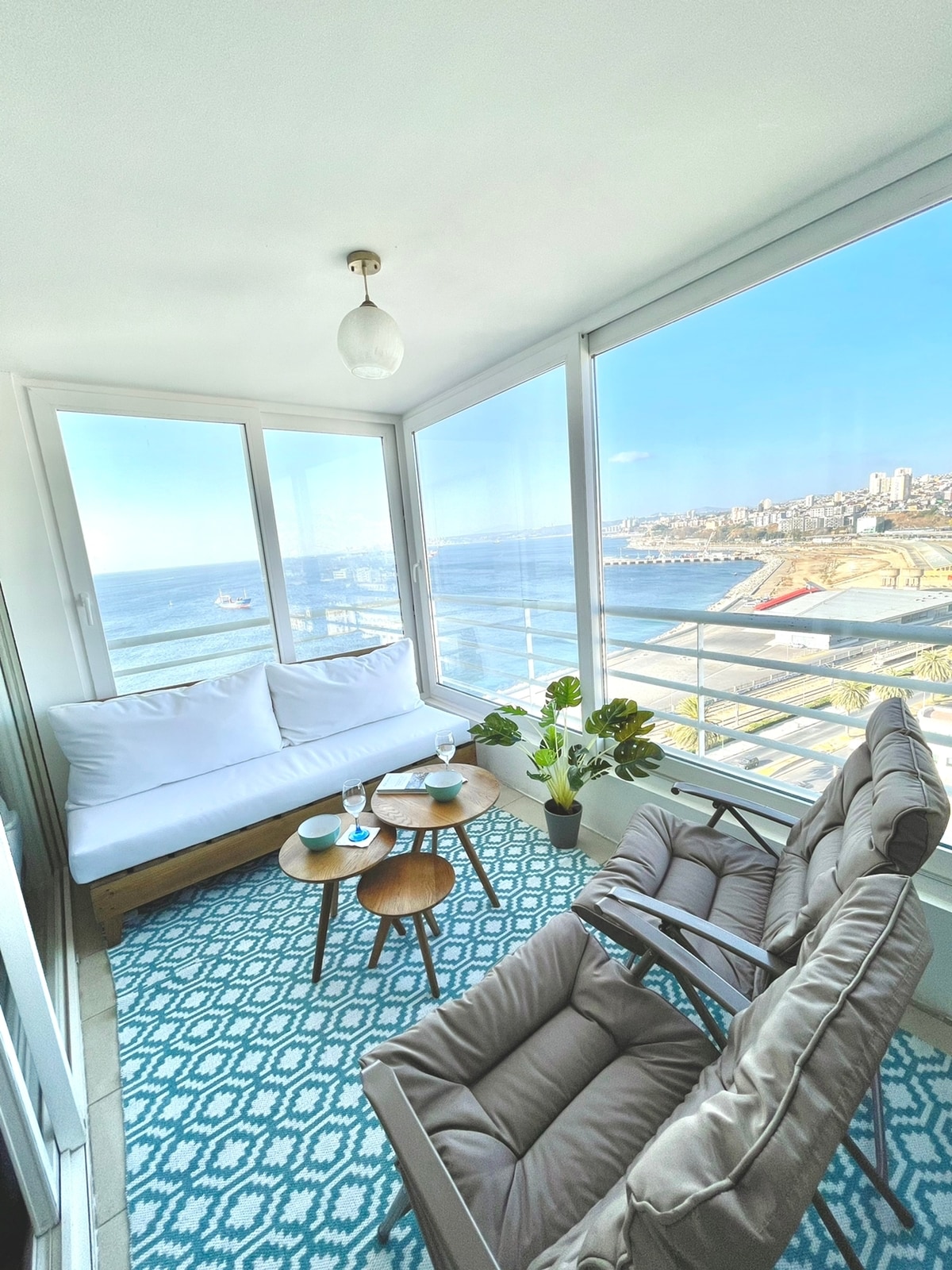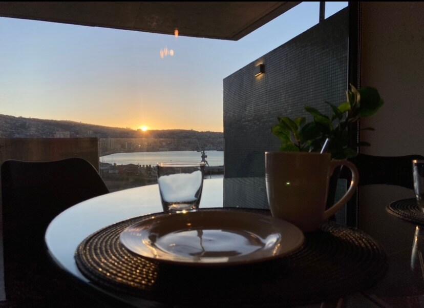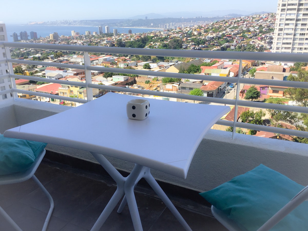 5* Viña/Valparaiso: SUPER OFERTA VERANO; IDEAL ESCAPADA, GRAN VISTA, EQUIPADO, PARKING, GYM, TERRAZA PANORÁMICA, LAVANDERÍA. En verano piscina al aire libre previa reserva. La mejor relación Precio/Calidad! Hermoso, cómodo, acogedor. TE SENTIRÁS EN CASA! Mas que alojamiento es panorama estar ahí: iluminado, en barrio tranquilo y residencial. Locomoción a 1/2 cuadra, plancha, smartTV, secador de pelo, camas hechas, parlante bluetooth, juguera, hornos, cafetera, sal, azúcar, té, café y más.