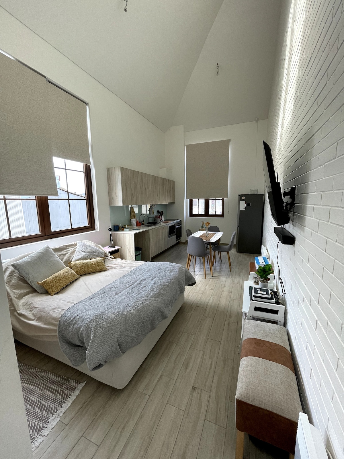 Comodo Loft de diseño arquitectonico, situado en el corazon de Cerro Placeres a una cuadra de Plaza La Conquista, barrio patrimonial tranquilo y con excelente conectividad a Valparaiso y Viña del Mar. Se encuentra ubicado al interior de una vivienda familiar, con acceso independiente. Somos Arquitectos, por lo que estaremos felices de entregarte informacion y de comentarte lugares iconicos para visitar y recorrer donde descubras el verdadero encanto de nuestra ciudad y sus alrededores.