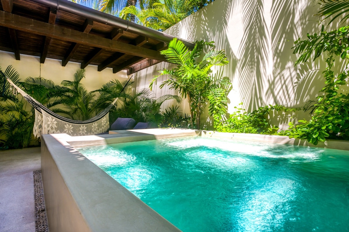 Great speed WiFi reliable for working remotely, Cozy apartment in Sayulita downtown just 2 blocks away from the beach. 2 bedroom and 2 sofa beds, capacity 6 pax total. Garden area and large room with high ceilings giving a balance of luxury and comfort, for relaxation and tranquility. You can enjoy coffe shop, bars and restaurants to delight your palate just a few steps away, it includes air conditioning, automatic controlled access, parking space, incredible lounge pool.