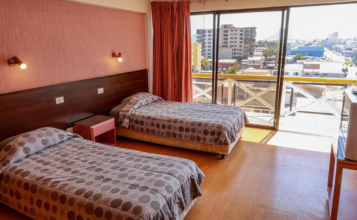 Perfecta para amigos o familiares, equipada con 2 camas individuales, baño privado, aire acondicionado, TV y WiFi gratis. Su excelente ubicación, cerca de Baquedano y Barrio Inglés, te permite moverte fácilmente por Iquique. Cada mañana disfruta de un desayuno buffet variado con frutas, pan, quesos y huevos preparados al momento. Limpieza y comodidad garantizadas.