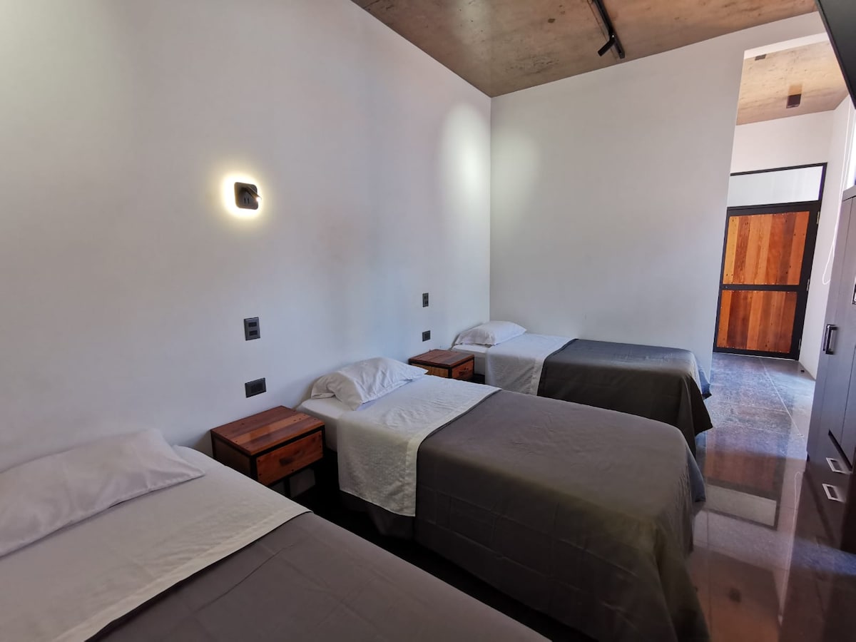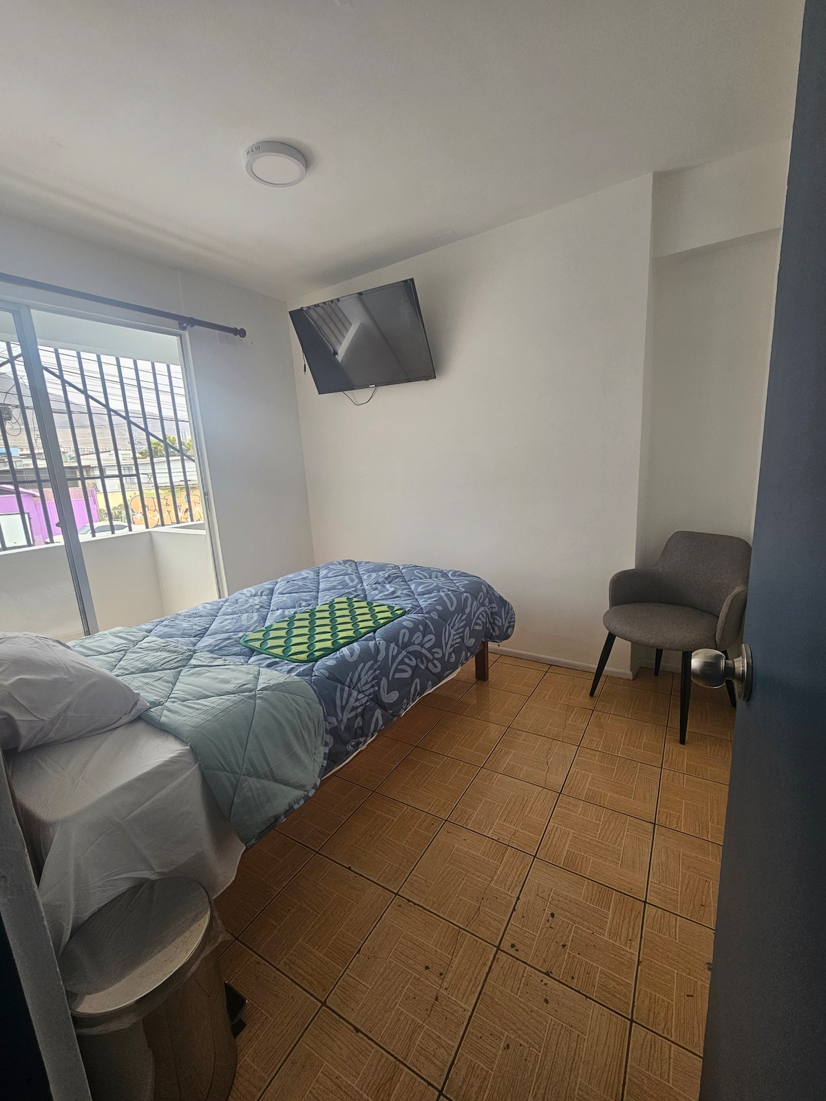 Habitación cómoda, con baño privado ideal para familias y trabajo que buscan un espacio amplio, tranquilo y seguro.