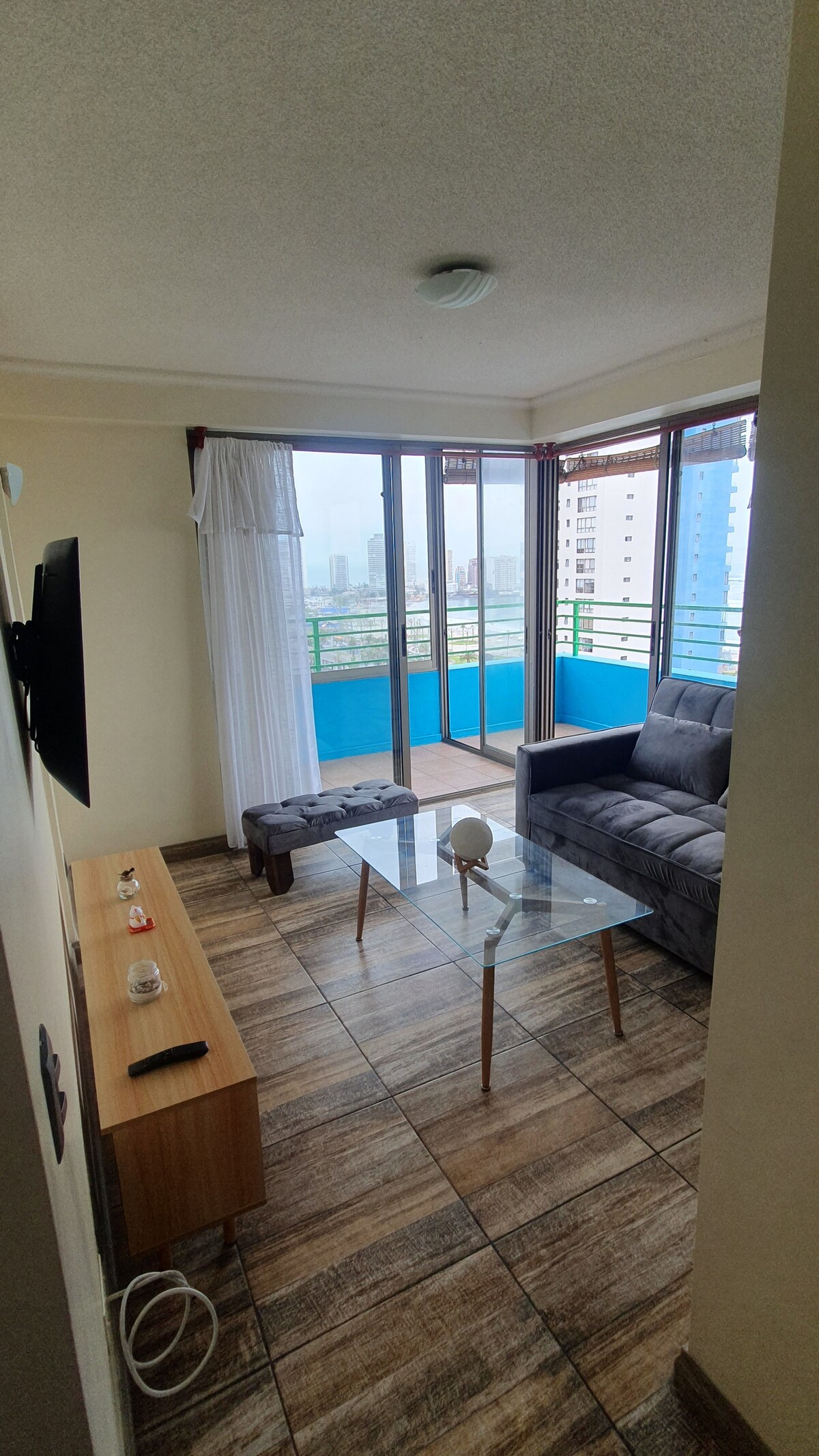 Departamento en Hotel Terrado Club, un ambiente, aire acondicionado, cocina americana equipada (cubiertos, vajilla, batería cocina, microonda, frigobar), amplio balcón, WIFI, Smart TV 43", TV cable, cama europea king size, futon cama, sábanas, toallas, detector de CO2, totalmente equipado. Piscina. Estacionamiento de vehículos (según disponibilidad) con cargo adicional pertenecientes a la hotelera. Cercano a supermercados, Casino de juegos, pubs y restaurantes, Playa Brava y Playa Cavancha.