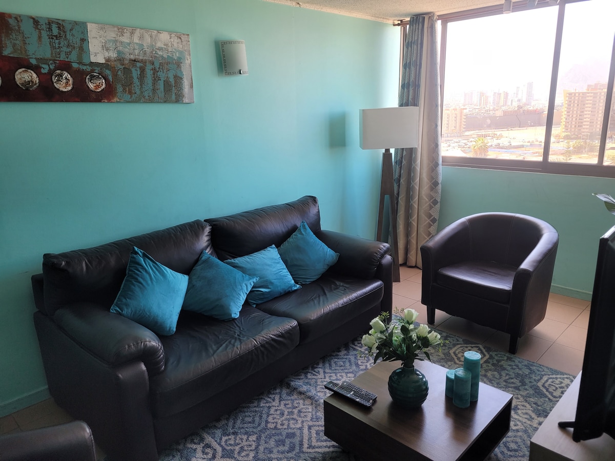 Disfruta con tu familia de este fantástico departamento con maravillosas vistas a Iquique y con todo el equipamiento necesario para que disfrutes unas excelentes vacaciones. el departamento se encuentra en una ubicación privilegiada; caminando por el paseo costero accederás a Playa Cavancha y al paseo Baquedano que conecta la costa con la plaza Prat polo comercial y financiero de la ciudad. El edificio esta rodeado de restaurantes y locales comerciales. Tendrás todo lo que necesitas cerca.
