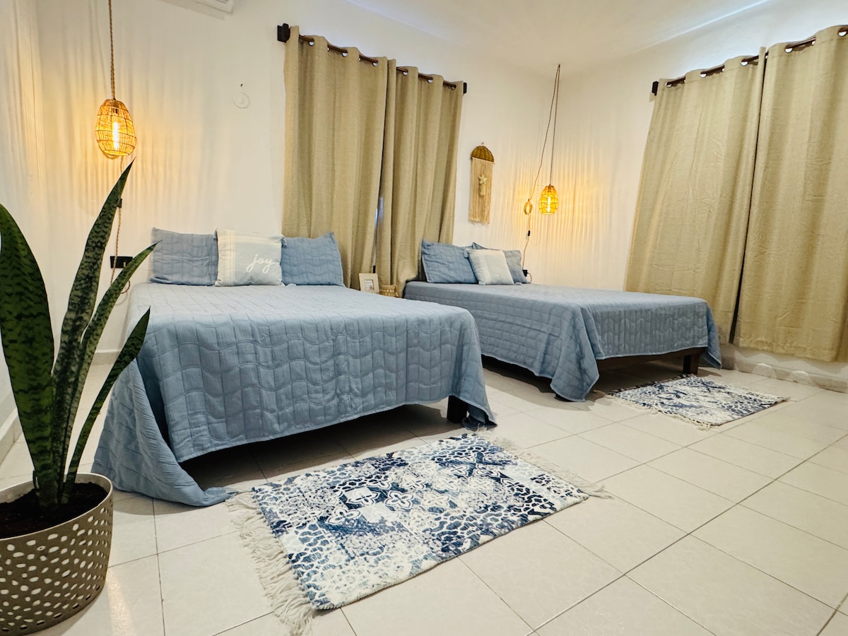 Sundreamers is located just one block from Northbeach, in less than 2 minutes you have your toes in the white sand, swim in the turquoise water or watch the amazing sunrise or sunset. Everything you need to enjoy your stay is right here in your studio apartment, colorful decorated with Mexican artcraft comfortable oversize beds, balcony, AC, WIFI, safe, private bathroom, closet, comedor, kitchenette with fridge, hotplate, toaster and coffeemaker to enjoy your stay and relax in your apartment.