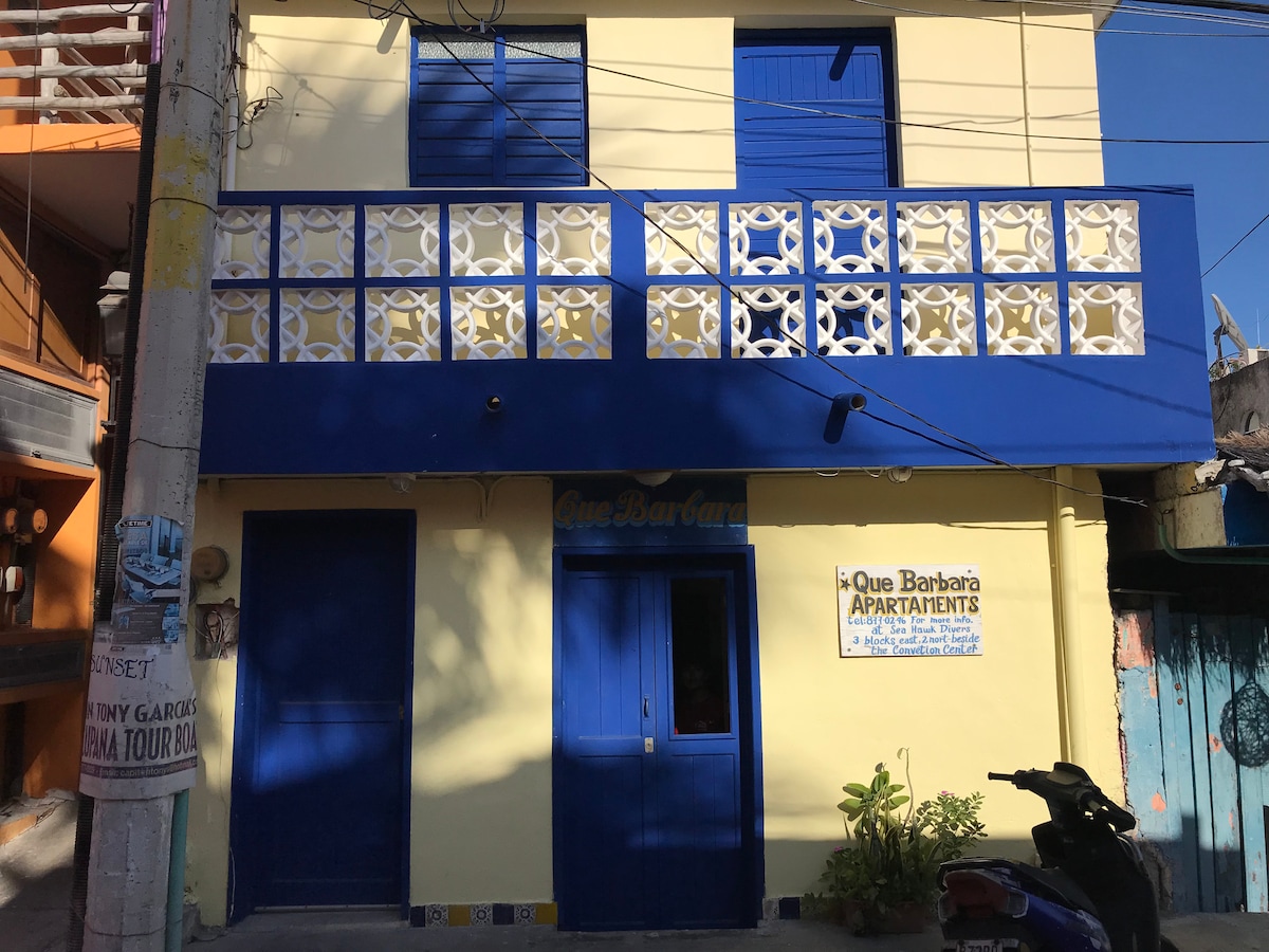 Sol Dorado 9 is just a 5-minute walk from the Ultramar ferry terminal. This simple second-floor studio includes: • A queen size bed, A/C, Wi-Fi, and Roku TV (only access to Netflix, YouTube, etc.) • A private bathroom with hot water (20L capacity) • A kitchenette with basic utensils and a jug of drinking water • A small safe box for your valuables The property is owned by my mom, Pia. Marcelina, our housekeeper, is also around and happy to help if you need anything during your stay.