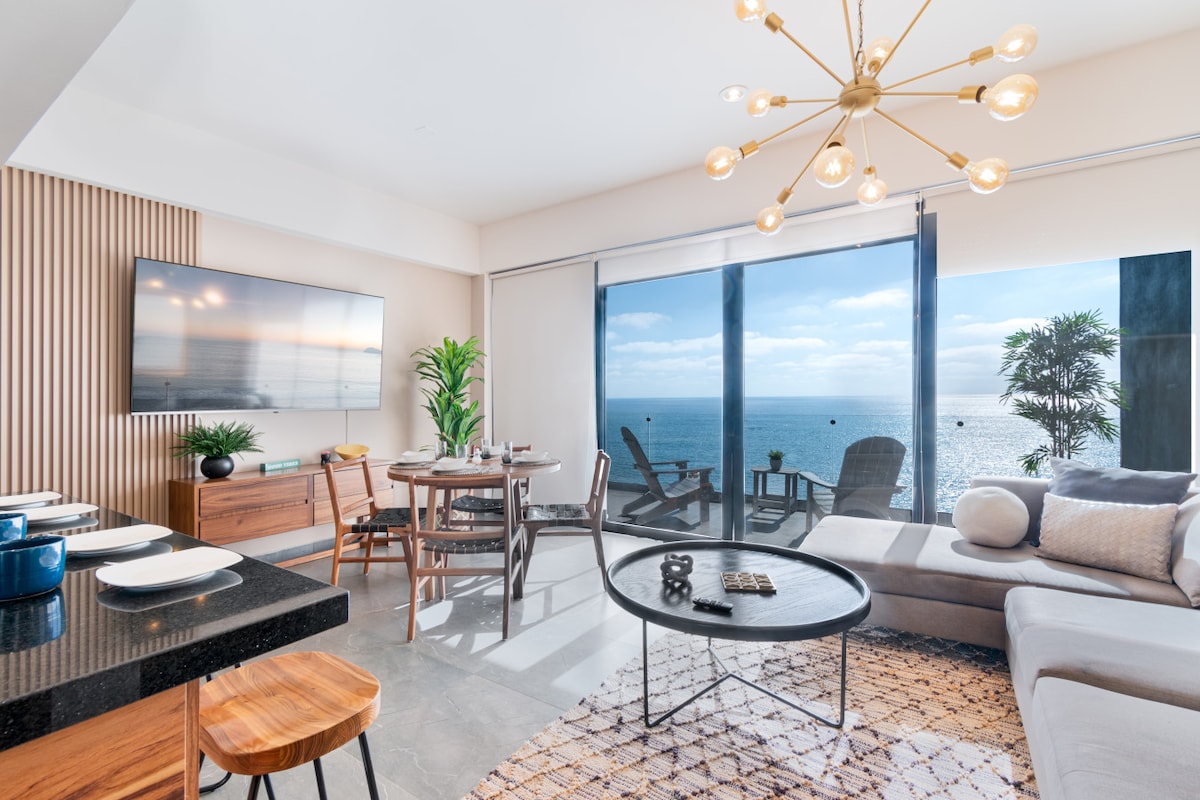 令人惊叹的海滨公寓|泳池、健身房和日落