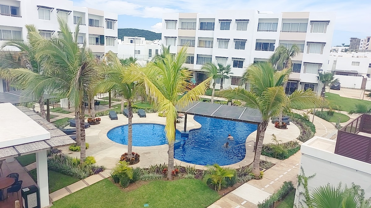 Bienvenidos todo tipo de viajeros. Departamento ubicado de la Zona Dorada, combina confort con lo moderno. Disfruta de un ambiente seguro y familiar, perfecto para relajarse y desconectar. A solo 6 minutos en auto del vibrante Malecón y a dos cuadras encontrarás la playa pública del Hotel Pueblo Bonito, su escapada soñada esta al alcance. Además estarás cerca de restaurantes de renombre como Costa Marinera, y una variedad de restaurantes donde podrás degustar deliciosos platillos locales.