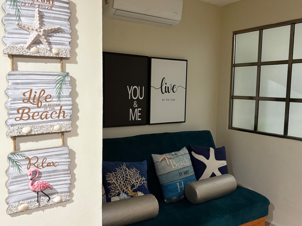 Recently renovated studio located right in the heart of the Cancun hotel zone, with a beautiful terrace and a breathless ocean view near by restaurants and night live fun activities. The studio has a modern touch with a beautiful terrace to spend time and enjoy the view and the ocean sounds with a cup of coffee, some wine or simply relax in the hammock. It has two queen size beds, a sofa type bed, a well equipped kitchenet and a dining table. It also has a flat screen tv and wifi service.
