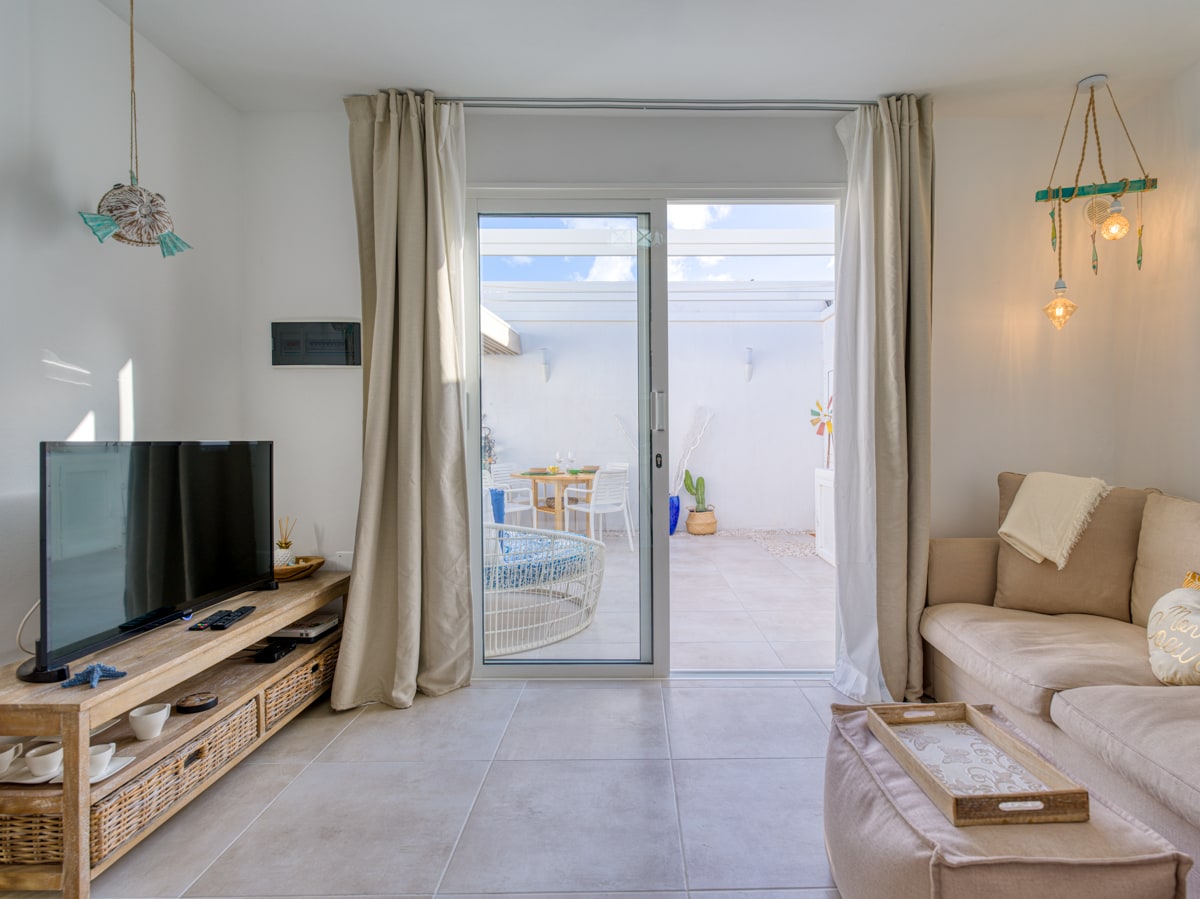 Casa Enda is a cozy modern and quite apartment with an amazing sea view just 5 mins walking from Playa Chica. There you will reach 7km of gold beaches. Swimming pool inside the complex.Casa Enda is perfect for water sports lovers.The most beautiful trails of the island start just outside the door. Even shopping lovers like the location.In the evening you could jump into the colorful nightlife of the island and discover its tasty local cuisine.At Casa Enda everything is just a stone’s throw away!