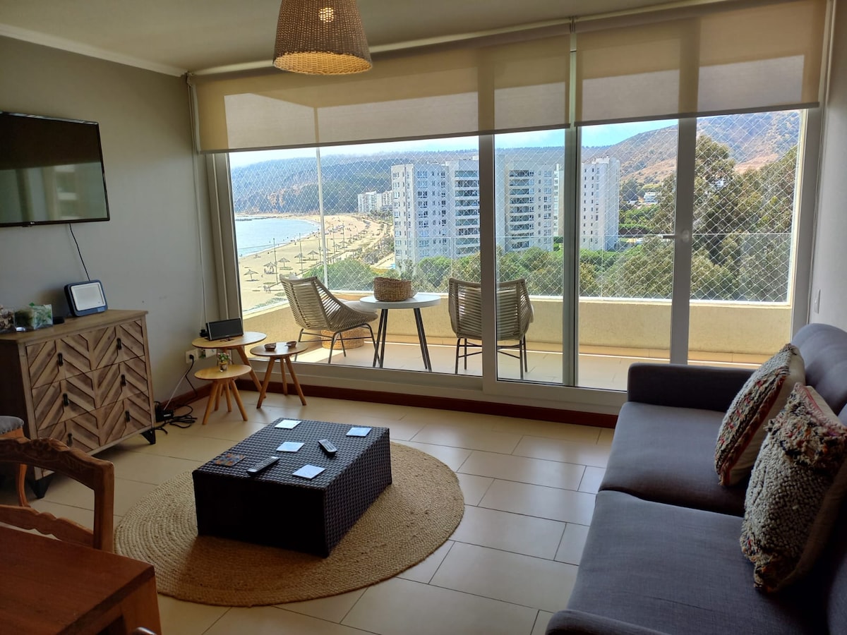 New and central condo apartment 1 block from the beach and plaza, where the best bars, restaurants, cafes and stores in Papudo are located. Ideal for families, couples and friends who want to stay in a comfortable, safe place, with 2 swimming pools, barbecue areas, a relaxation room with various amenities. All spaces have access for people with reduced mobility. Located in a strategic and privileged location steps from the beach, yacht club and fishermen's cove.