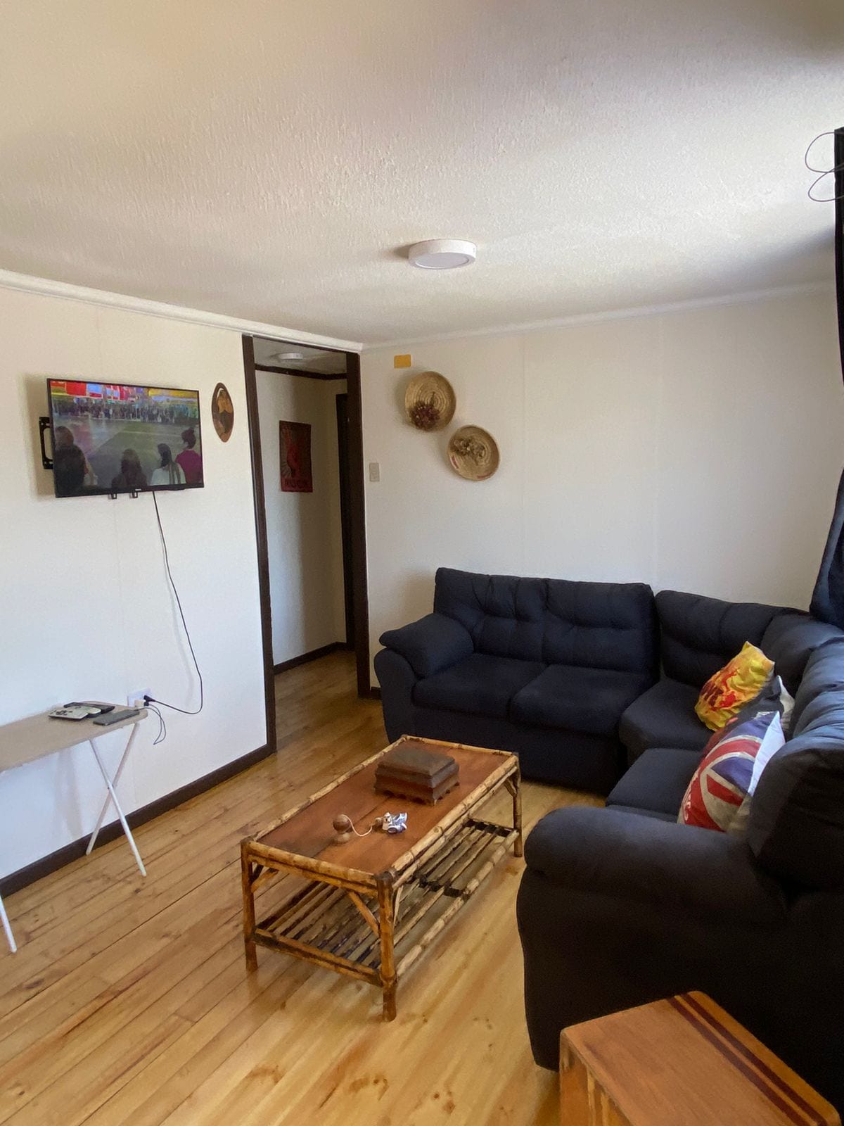 ¡Te damos la bienvenida a nuestro acogedor departamento en Papudo! A pasos de la playa, en un complejo tranquilo con seguridad 24/7. Cuenta con 2 dormitorios, 2 baños, estacionamiento y una hermosa terraza con vista al Pacífico. La cocina está completamente equipada, hay lavavajillas, lavadora/secadora y parrilla para disfrutar. Ideal para 4 personas + bebé, con WiFi de alta velocidad. Los espacios comunes están sujetos a disponibilidad del edificio. ¡No aceptamos mascotas!.