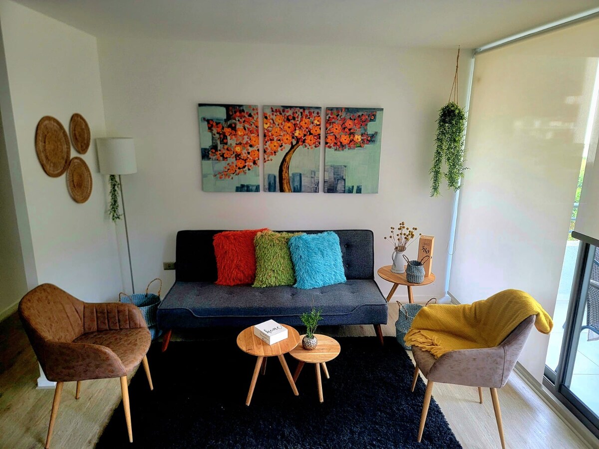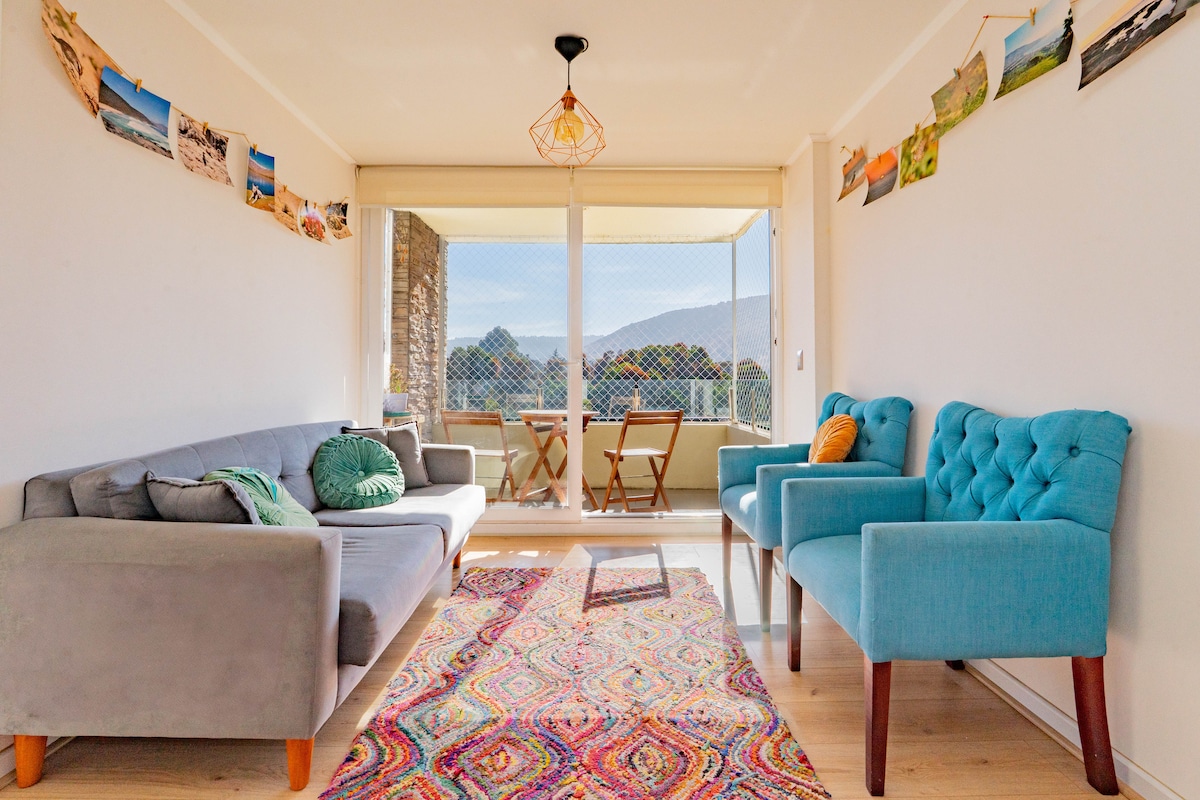 En este alojamiento se respira tranquilidad: ¡relájate con toda la familia! Depto 2D/2B, cama matrimonial, 2 camas de 1 plaza y si lo necesitas puedo dejarte 1 colchon inflable. Puedes traer tus sábanas y toallas, o si quieres puedo añadirlas con un costo extra. Departamento en 6to piso, totalmente equipado! Balcón con malla de seguridad, artículos de aseo, secador de pelo y todo lo necesario para una rica estadía. Escríbeme para que podamos conversar.