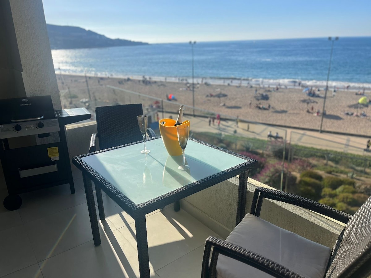 Escápate de la rutina a menos de dos horas de Santiago. Increíble departamento con dormitorio principal cama King con baño en suite y dormitorio 2 con camarote y cama individual, con baño en pasillo, con sábanas y toallas, cuenta con gran vista, wifi, tv en dormitorio y living, parrilla a gas, Calefaccion, amoblado full para disfrutar junto a los tuyos!! Estacionamiento. A pocos minutos de la playa, cafés y restaurantes, cuenta con piscina, quedamos atentos a tus duda!!