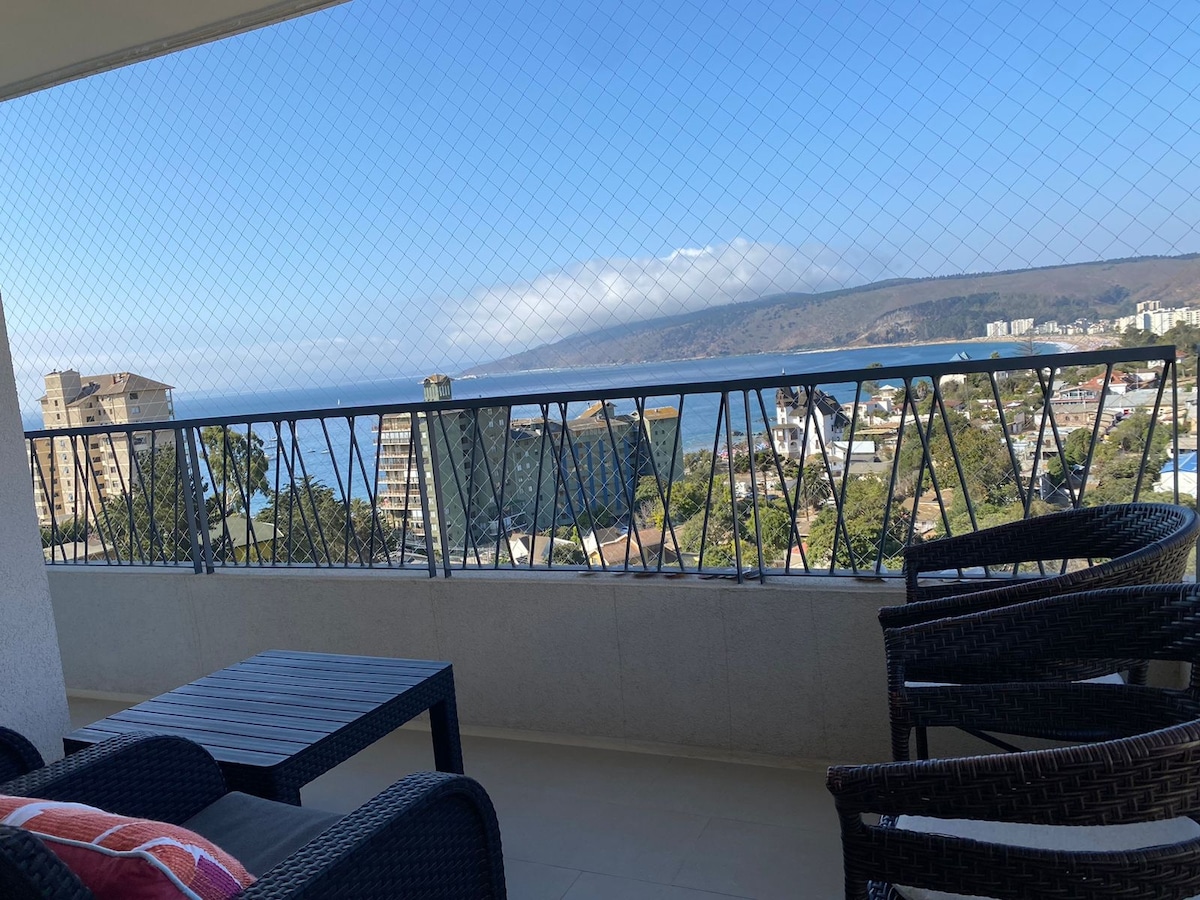 Hermoso departamento con amplia vista al Mar para Disfrutar en Familia, Amigos o Pareja. Cuenta con una ubicación privilegiada a 1 cuadra de la playa y comercios (restaurantes, Bares, Cafeterías, Supermercado, Terminal de Buses, etc). Tiene estacionamiento privado. Ven a descansar y vivir la experiencia de estar en una las mejores playas de la costa Chilena. El edificio cuenta con control de acceso, piscina con horizonte infinito, quincho, área de juegos y más.