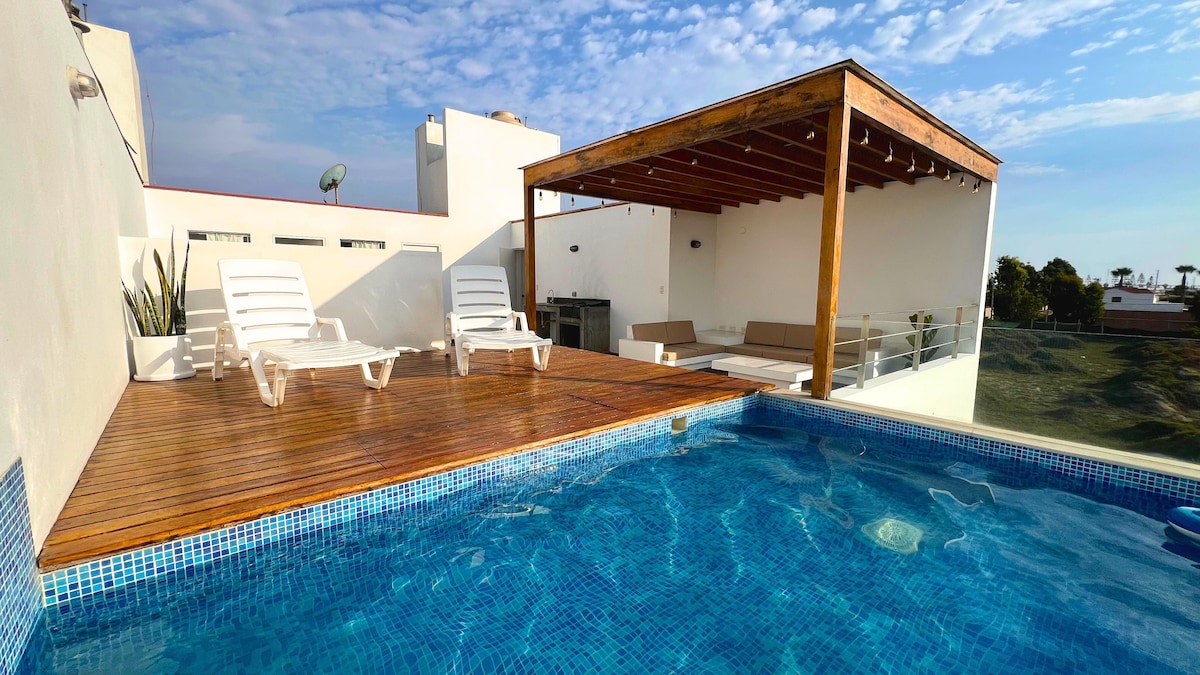 豪华公寓,带屋顶、烧烤、空调和海滩
