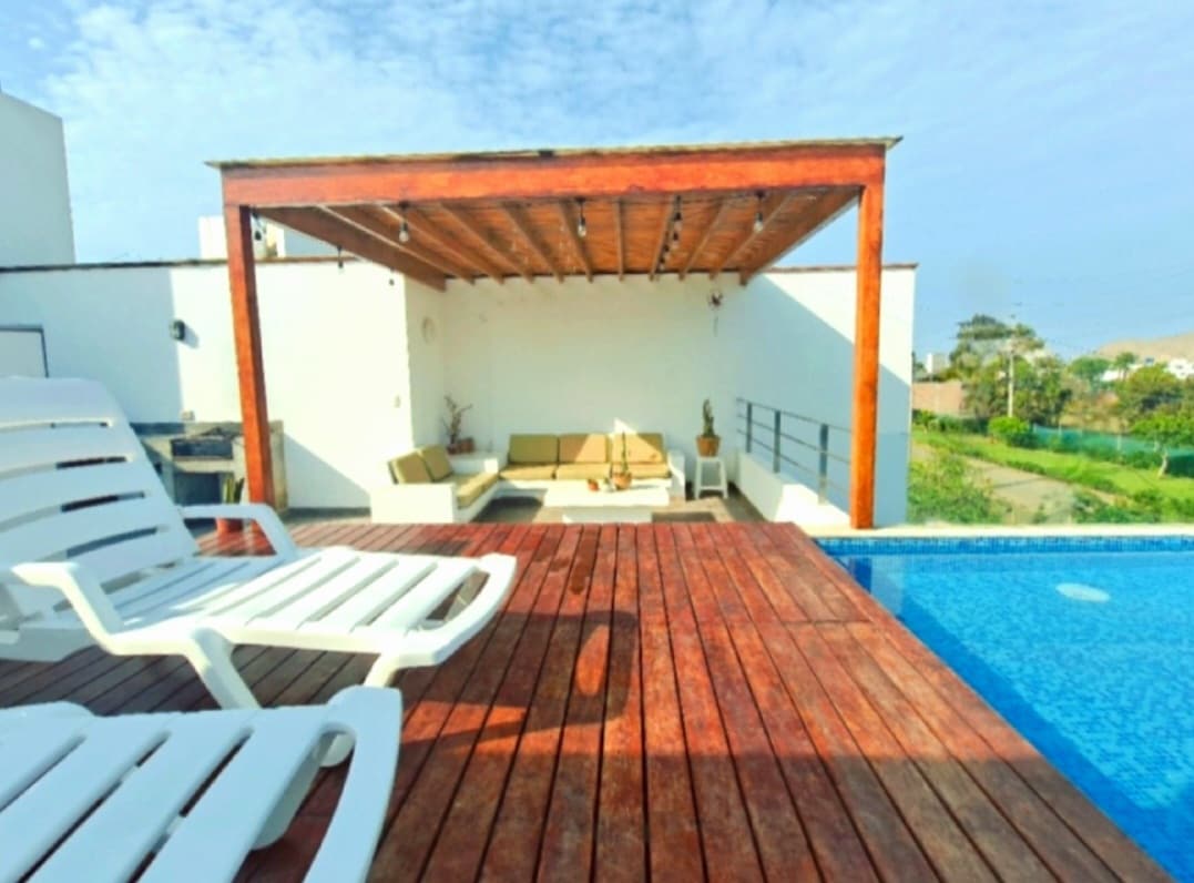 Take a breath and escape the city in this exceptional Beach House with pool, privilegedly located in Chocaya - Asia, just steps from the sea and in front of Condominio La Venturosa. Associated House: Enjoy the exclusive benefits, such as direct beach access, private umbrellas, exclusive parking, a minimarket, children's playgrounds, sports areas and a spacious barbecue area. Conveniently located just 15 minutes from the Boulevard de Asia, offering easy access to the finest restaurants in Lima.