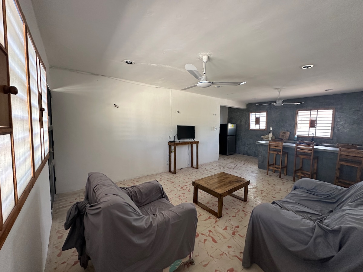 ¡Relájate frente al mar! 🌊 Disfruta de nuestra casa frente a la playa, con 2 habitaciones (2 camas matrimoniales, 2 individuales) y hamacas disponibles (solicítalas con anticipación). La cocina completa tiene microondas y cafetera. Cuenta con Wi-Fi y extras como camastros, juguetes de playa y juegos de mesa. Explora la zona con paseos en lancha, tours de flamencos, pesca o renta de kayaks. Restaurantes cercanos con mariscos, pastas y más. ¡Relájate y disfruta!
