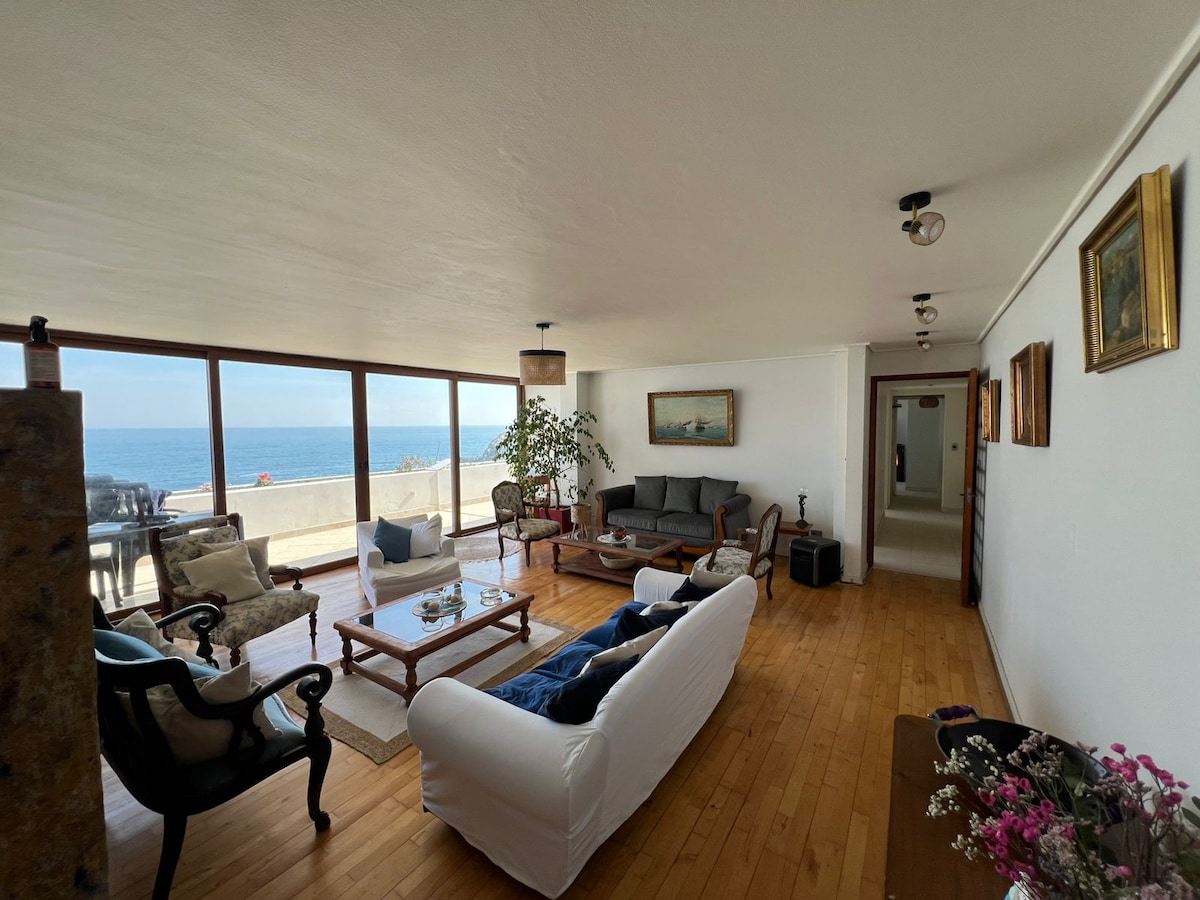 Hermoso departamento ubicado en el mejor barrio de Concón. Una exquisita terraza con vista panorámica para aprovechar el Sol. El departamento tiene todo lo que necesitas para tener una experiencia agradable y tranquila. Cuenta con un estacionamiento del departamento y el condominio cuenta con varios de visita en su interior. Conserva una esencia de Barrio antiguo que casi ya no se ve en estos días. Los esperamos! Reglas: No fiestas. No mascotas. No fumar. no visitas, solo huéspedes.