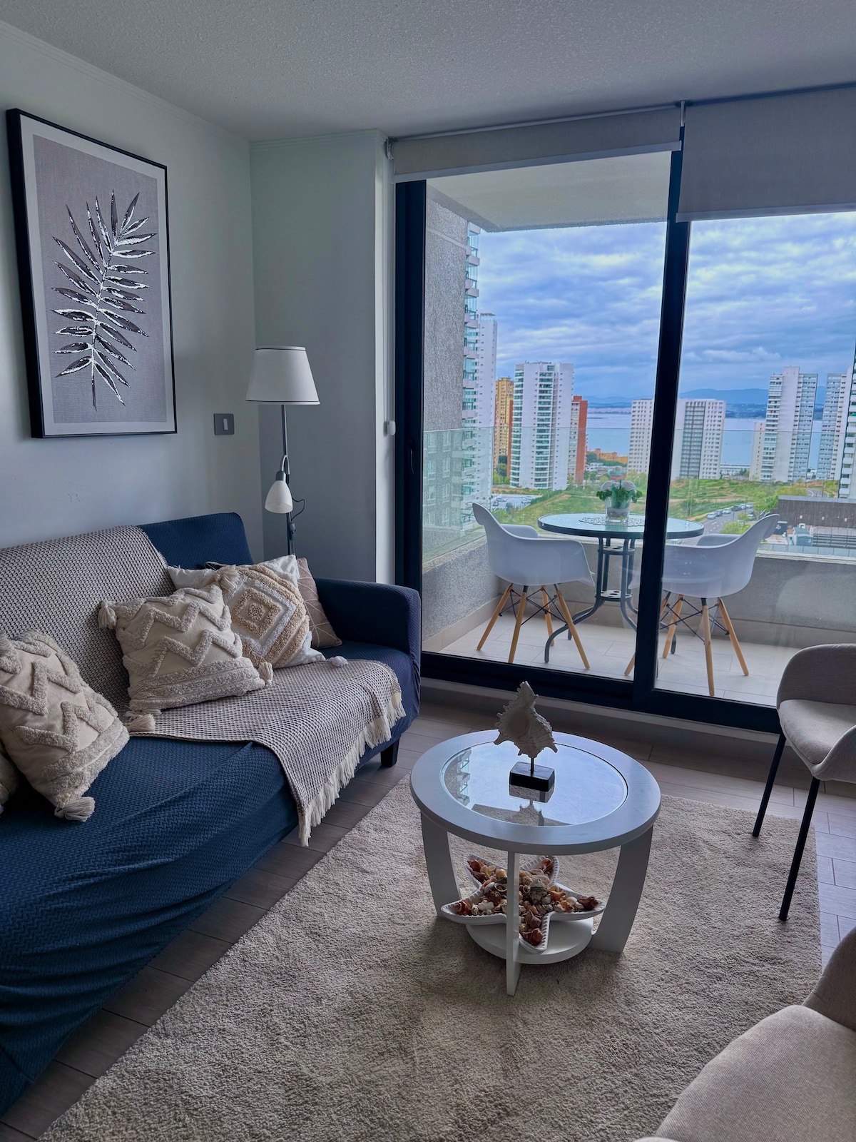 A veces necesitas ver y escuchar el mar, sentir el murmullo de las olas y el graznido de las aves. Si es lo que buscas, este es tu lugar. Entre Viña y Concón, lejos del área del socavón. Estamos atentos y disponibles para recibirte. Un departamento en un edificio del 2020, recién equipado y a solo hora y media de Santiago. Con todos los servicios que necesitas para tu tiempo fuera. Ideal para parejas, con la comodidad que buscas y con una terraza que te atrapará y de donde no querrás salir.