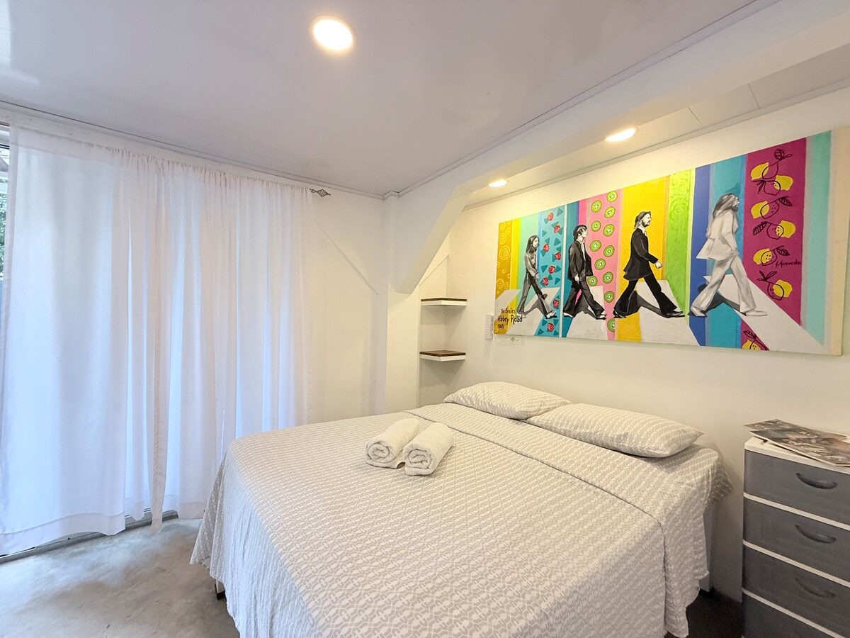 La habitación tiene cama queen, Aire acondicionado, televisor con firestick para acceder a servicios de streaming con tu cuenta propia(no tv cable) y baño privado. La cocina pequeña privada cuenta con lo necesario para hacer comidas sencillas. Ubicado en playa chiquita, frente a carretera principal, 300 mts de la playa y supermercado, 4 km de Puerto Viejo centro y 2 km de Punta Uva. Cuenta con parqueo privado. Orgullosamente Costaricenses🇨🇷