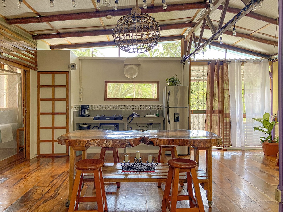 C A S I T A C I E L O @Casitas Rio Cocles A charming hideaway nestled in nature, with a peaceful river on the property and coaster bikes included for easy exploring. Just minutes from Puerto Viejo’s best beaches, restaurants, and adventures. Simple, stylish, and designed for pure relaxation—your perfect home base for an unforgettable stay. Whether you stay in, head out, or do a bit of both, this casita is all about laid-back vibes and effortless living.