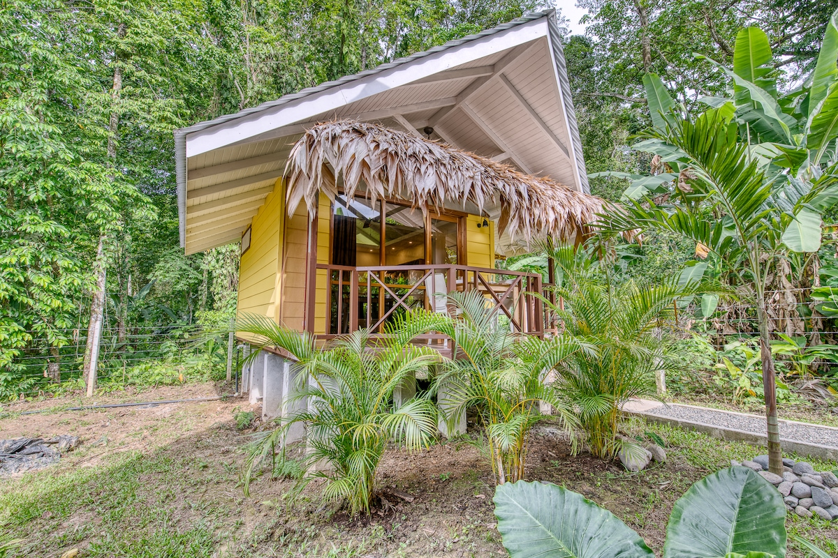 Dear travelers, this is not exactly a treehouse, but we decided to call it that because many of our guests describe the experience as feeling like being up in a tree. The cabin is located in the rainforest and only 5 minutes walk to Cocles beach and pristine Bluff Beach (just in front of Pirripli Island.) We currently have a 100 MB stable connection so it is a great option for people who need to work during their holidays. The access road is flat, easy walking for everyone and no 4x4 is needed