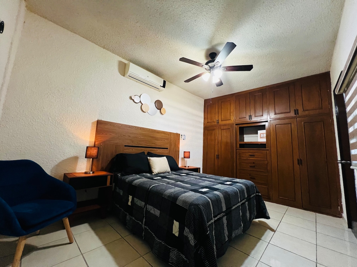 Disfruta de la comodidad y la excelente ubicación de estudio. A pocos pasos de la playa, restaurantes, súper mercados, cine paradas de autobús, etcétera. A pocos 5 minutos de la playa A 7 minutos del hermoso malecón. Cuenta con una cama queen size, baño equipado, wifi, refrigerador, microondas entre otras amenidades escenciales para tu estancia.