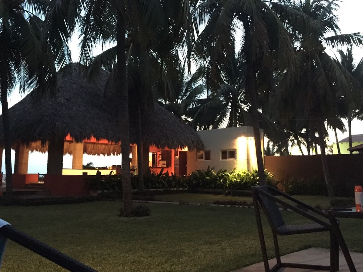 Mangomar in a large house of approximately half an acre (1.2 Acre apx) in front of the Pacific Ocean in beautiful Sihuapilapa beach (Not so well known, a little secret that our lovely guests want to keep). A large pool, all rooms with AC, WIFI, 4 bedrooms with 4 full bathrooms (2 private and 2 shared), a urinal, beach bar, ping pong, swings and playground for kids, full kitchen, safebox, Argentinean bbq, massage and crib upon request and a safe beach. We also have eco-friendly solar panels.