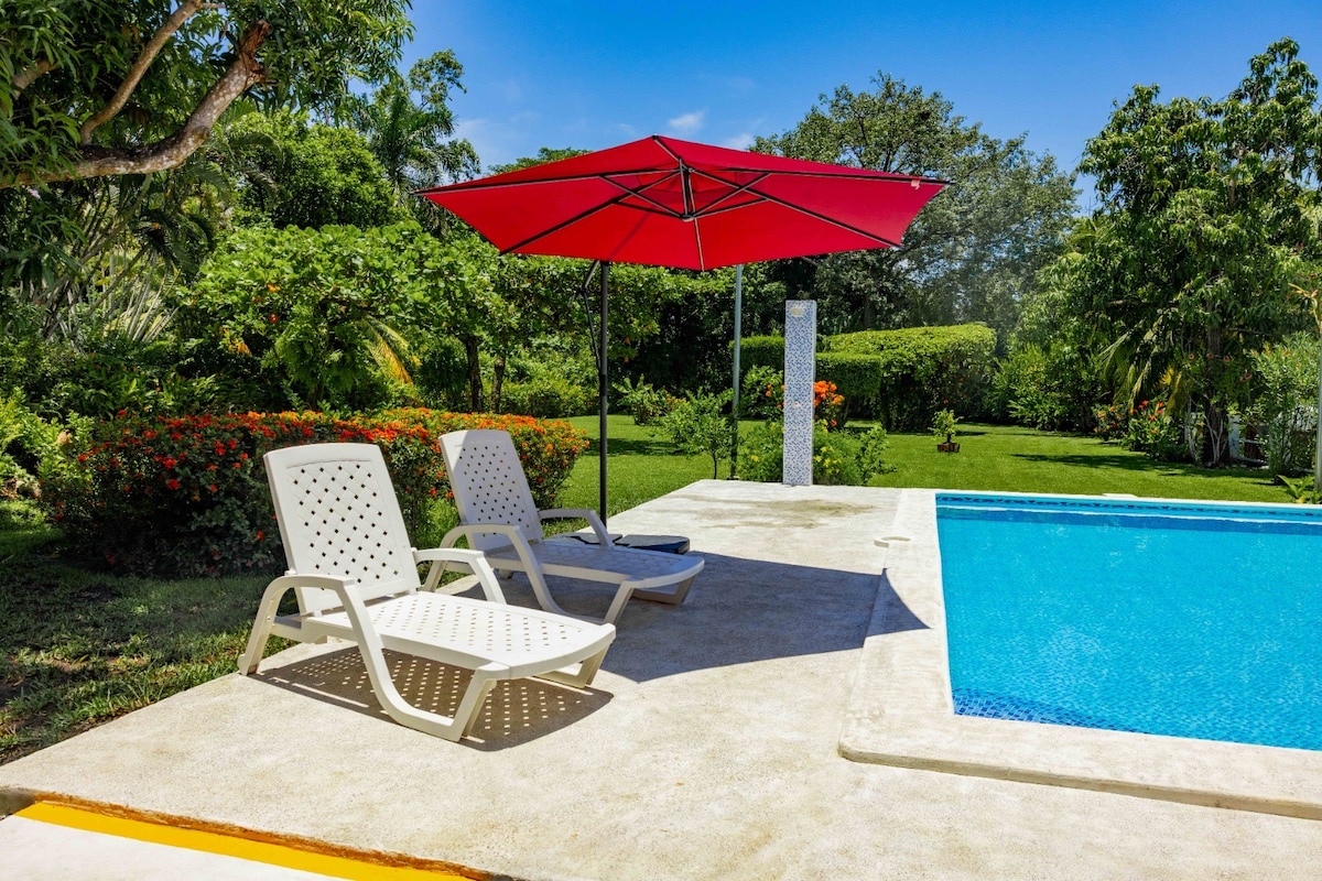 The main living unit of our 3 Villas, the Casona has 2 spacious king ensuites with private closets and bathrooms, along with a third bedroom with 4 twin beds on bunks. Private kitchen, living room, dining area. Also has access to our pool, firepit, BBQ and multi-sport court. All outdoor spaces are common and shared areas. Beach access 5-8 minute walk.