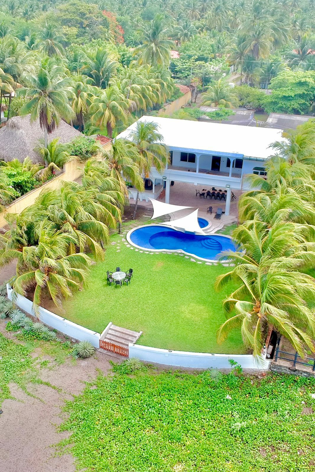 Verano Azul is an ocean front beach house that offers everything you will need for a stay with family and friends. This beautiful home sits on one of the best beaches in El Salvador, Costa Azul, in a private gated neighborhood, away from the city lights and noises for a stress free vacation. You can relax, read a book, sip your favorite drink in the hammocks or in the beach front cabanas marveling and listening to the ocean waves and enjoying the best sunset and sunrise in El Salvador.
