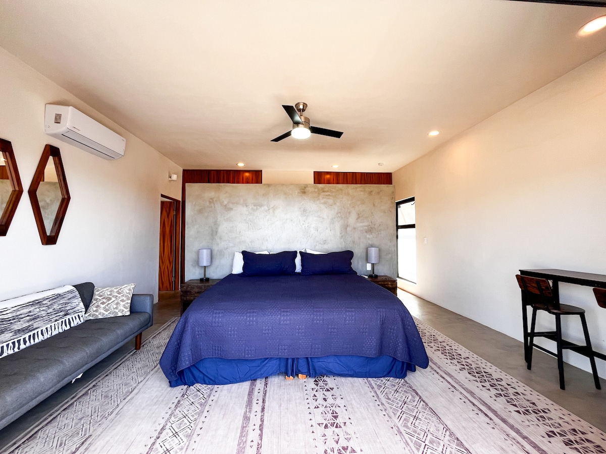 It doesn´t get any closer to Playa Los Cerritos! Our condo is a spacious suite with a beachfront terrace to check out the surf or enjoy one of the most beautiful sunset in Baja. The space has everything you need to live on the beach: - A master bedroom and two bathrooms. - One King size bed for your comfort. - A couch in the living room for the little one or the thrifty friend that you love. - A Kitchen to prepare the catch of the day. There are also 2ACs (in the living room and the bedroom)