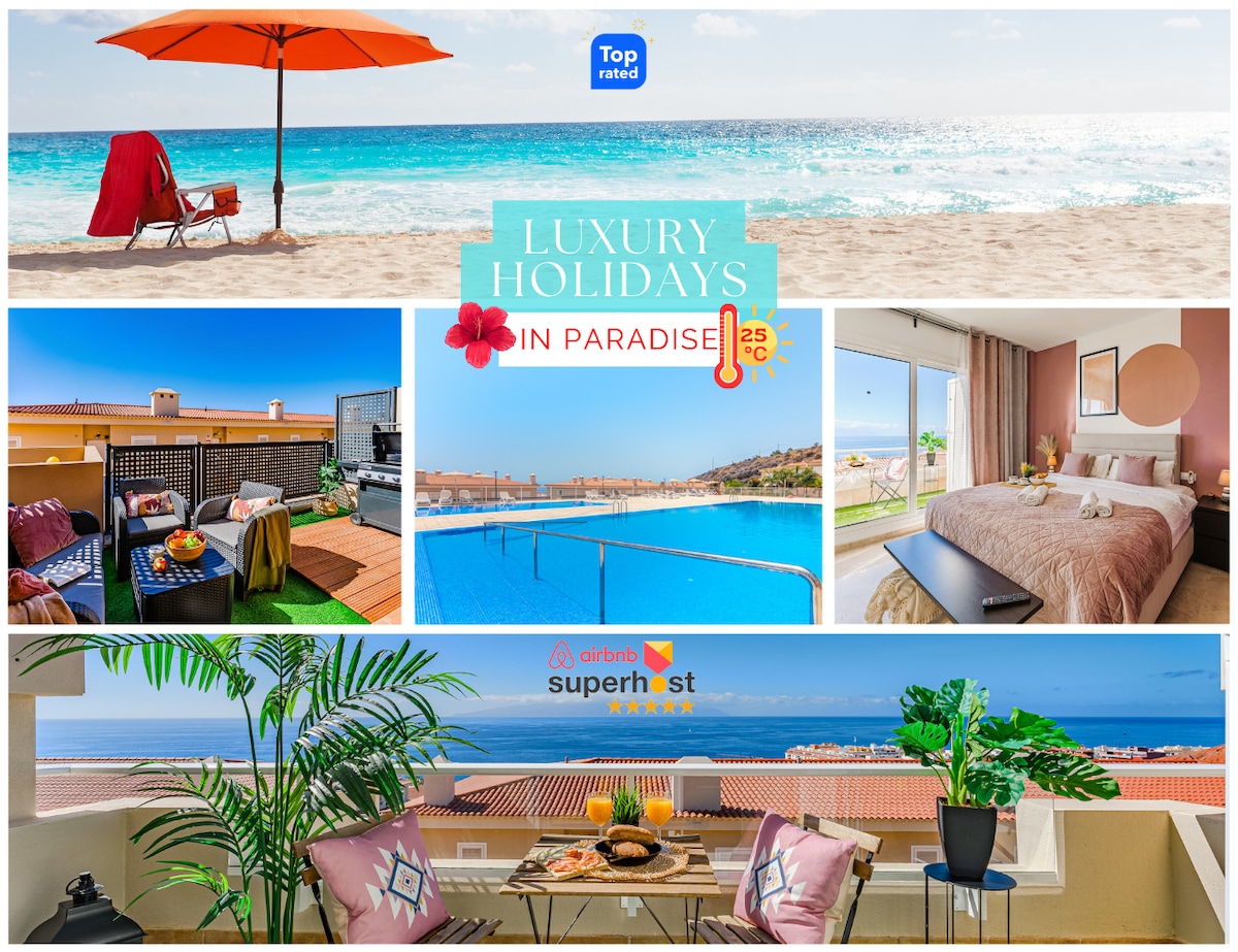 带按摩浴缸的顶层公寓,可欣赏海景/泳池景观