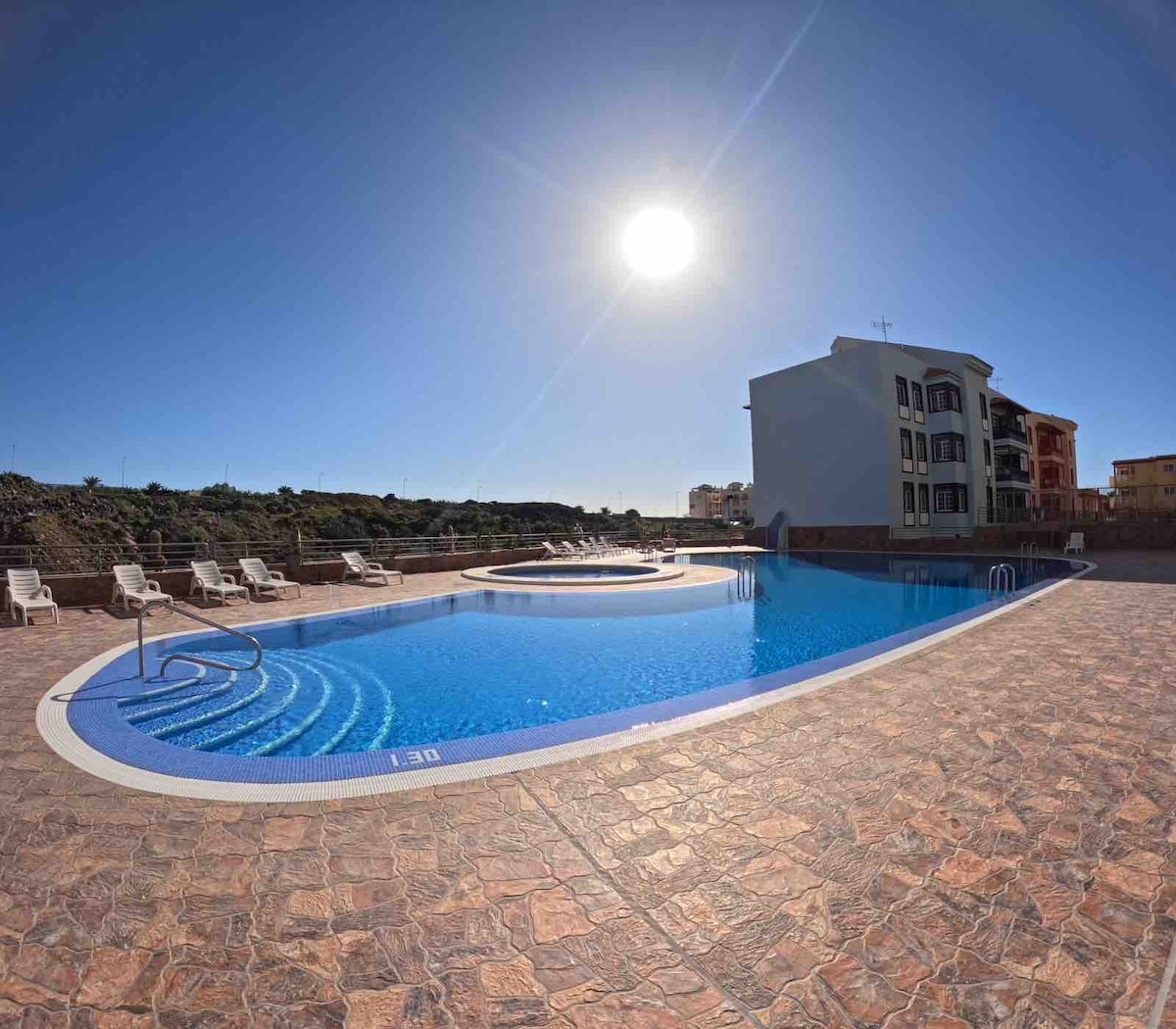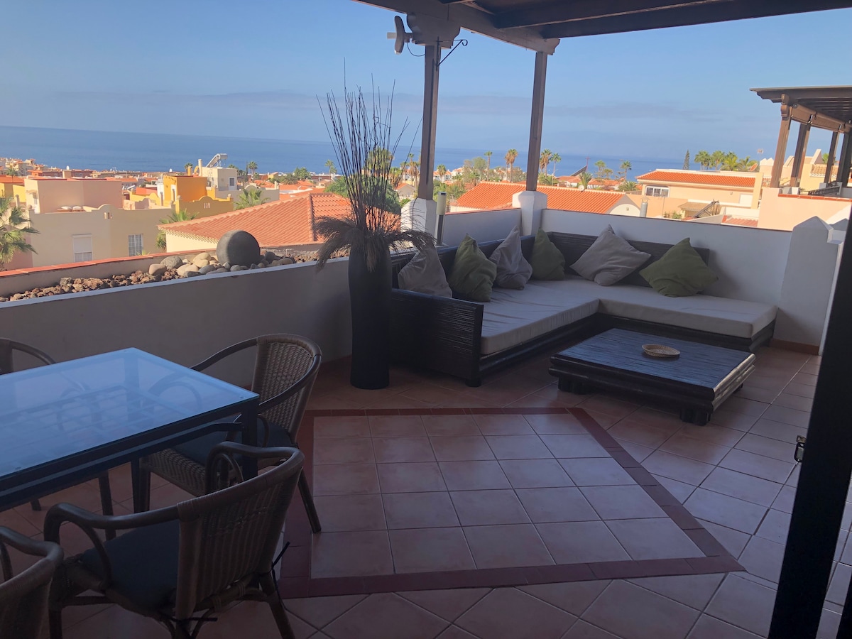 Welcome to our fully refurbished studio with an impressive ocean view, close to beautiful beaches and surf spots. Equipped with fast Wifi, smart TV, fully supplied kitchen, wonderful shower, washing machine and all comforts. Guests have free access to the swimming pool. The bus and taxi station is right in front of the studio. There are supermarkets and shops in front of the studio. Just 5 minutes walk from Playa de las Américas, 8 from Playa de Troya. 15km from the airport.