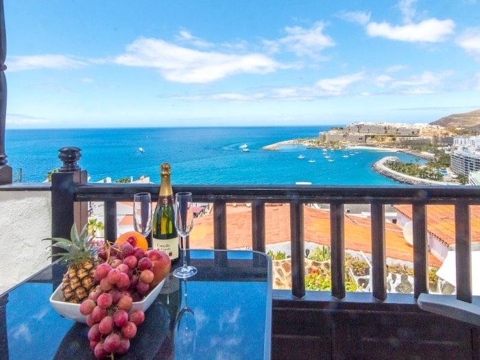 Precioso apartamento en primera línea de playa, justo frente a la Playa de Puerto Rico y a 2 minutos andando del puerto deportivo Simplemente cruce la calle para poner los pies en la arena, o pasear por la avenida junto al mar y los barcos de recreo. Muy cerca de servicios como supermercado, farmacia, bares/restaurantes, así como del Centro Comercial Mogan Mall. El apartamento se encuentra a 30 minutos del Aeropuerto, a 15 minutos del icónico Puerto de Mogán, y a 15 minutos de Maspalomas.