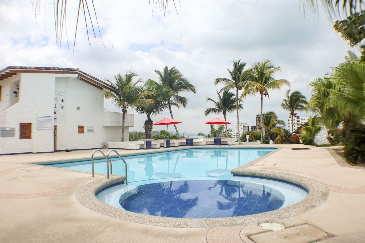 Con una vista privilegiada desde el 9no piso dentro de un Resort cerrado, incluye seguridad las 24 hs, aire acondicionado, El edificio y Resort dispone de generador electrico y cisterna, DirecTV, Carpa y sillas para la playa instaladas, lindo mobiliario, parqueadero cubierto, acceso directo a playa, 7 piscinas, 2 yacuzzis, parques infantiles, canchas deportivas de tenis, futbol, básquet, vóley, golfito, billar y parrilla familiar. *No incluye el costo del brazalete del Resort *