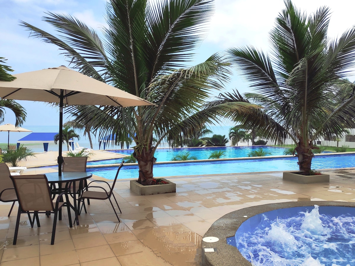Con una vista privilegiada desde el 9no piso dentro de un Resort cerrado, incluye seguridad las 24 hs, aire acondicionado, El edificio y Resort dispone de generador electrico y cisterna, DirecTV, Carpa y sillas para la playa instaladas, lindo mobiliario, parqueadero cubierto, acceso directo a playa, 7 piscinas, 2 yacuzzis, parques infantiles, canchas deportivas de tenis, futbol, básquet, vóley, golfito, billar y parrilla familiar. *No incluye el costo del brazalete del Resort *