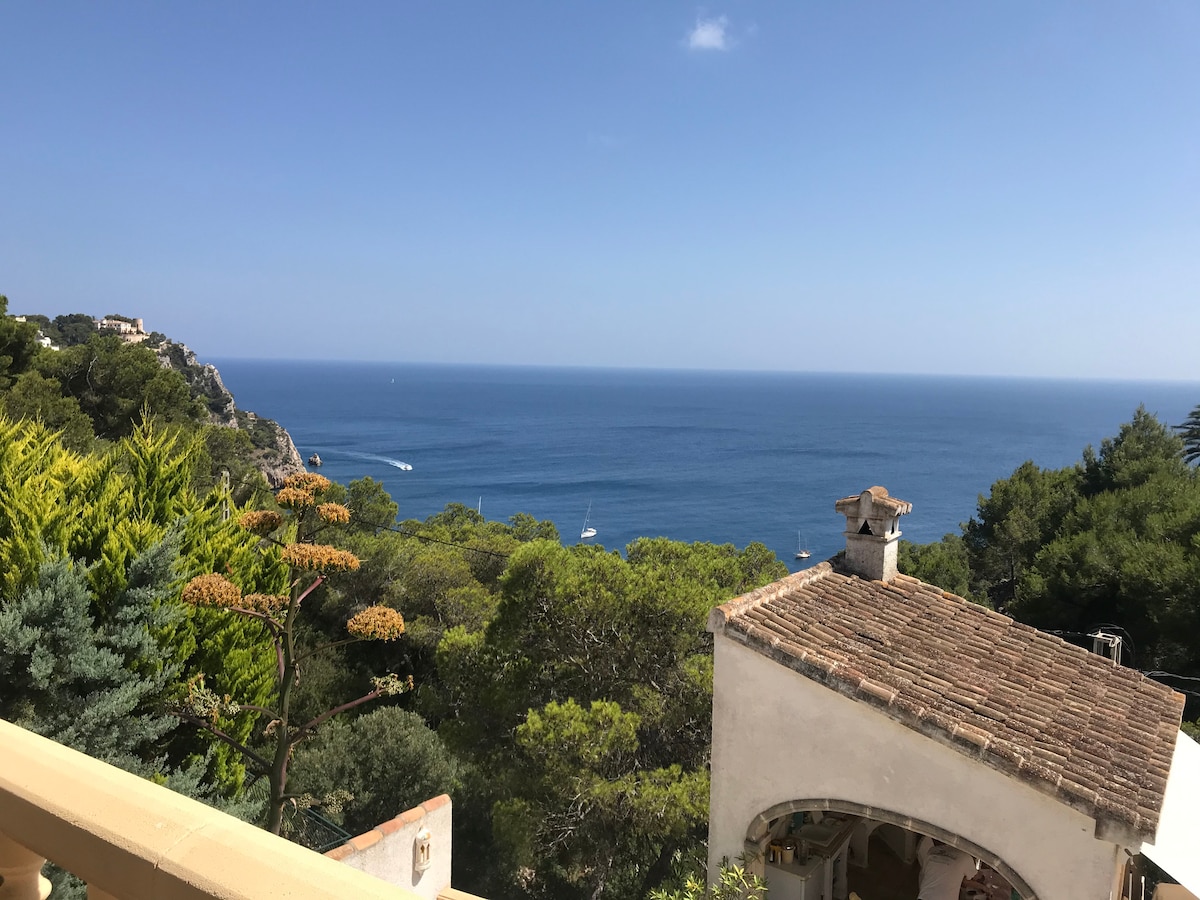 Welcome to Horizonte Azul, a cozy nest with astonishing views over the sea and the spectacular cliffs of the Moraig cove. Located in a pretty residential area, your two stylish rooms have individual entrances and are connected through a beautiful bathroom. On your private shaded terrace, an outdoor table and furniture w/sink allows you to prepare breakfast or cold bites. Activities? Book a private Pilates lesson on site, or enjoy hiking and other sports close by. We look forward to you staying!