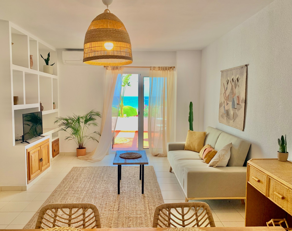 ¡Maravilloso bungalow en primera línea de playa! Relájate viendo los atardeceres desde el sofá mientras escuchas el sonido de las olas. Disfruta de la tranquilidad de la zona, perfecta para familias y parejas con todos los servicios al alcance sin necesidad de mover el coche. La amplia terraza será tu lugar favorito para desconectar y compartir momentos inolvidables con los que más quieres. Será un recuerdo que no olvidarás.
