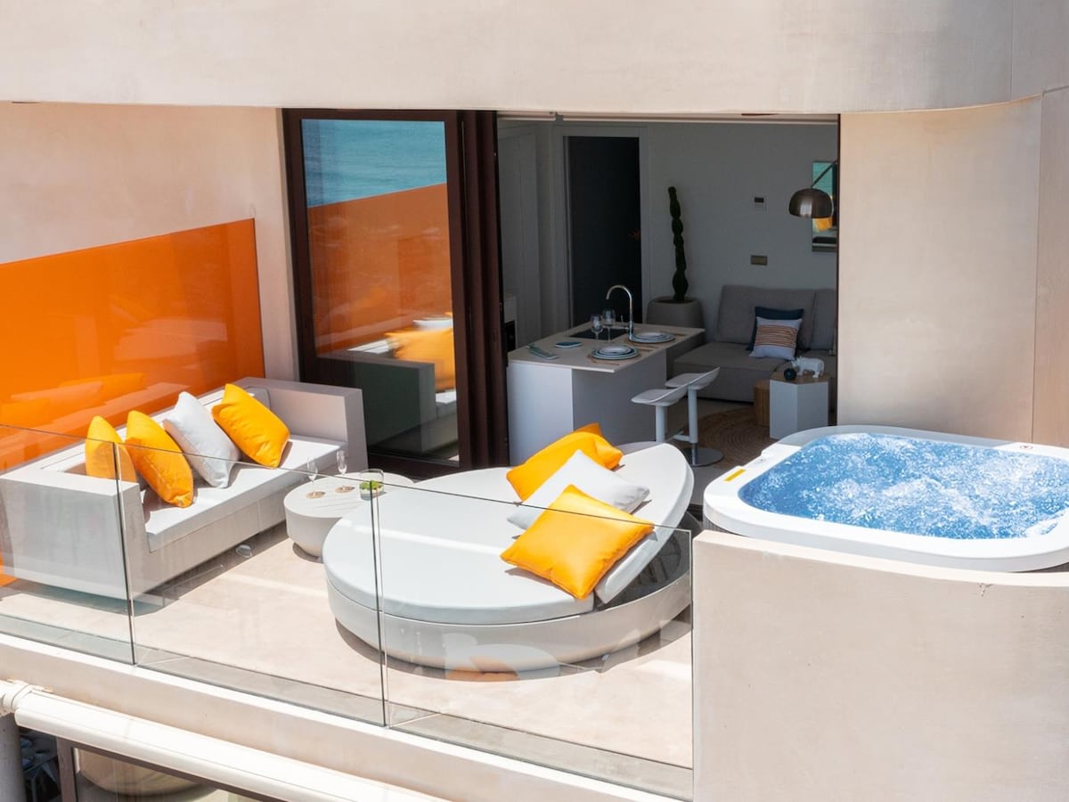 带热水浴缸和无边泳池的豪华顶层公寓