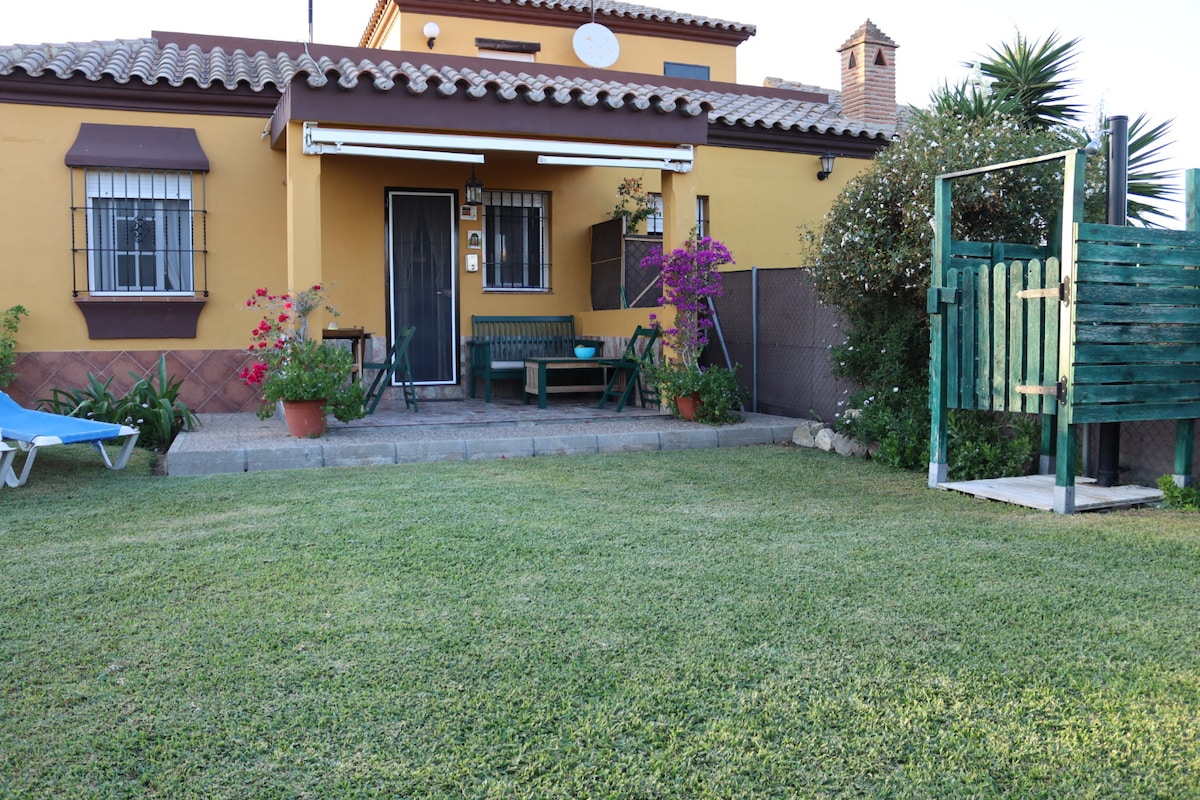 +INFORMACIÓN AL 📞+34 648 espacio 51 espacio 80 espacio 43. Situada en el Palmar, a 6 minutos a pie de la playa, la cabaña de 36 mtrs2 es un espacio abierto excepto el baño, cama de matrimonio de 1.50, sofá de tres plazas, si lo hace cama es individual, capacidad para 3 personas, o dos adultos con dos niñ@s pequeños. Baño dentro de la casa, cocina americana, aire acondicionado, calefacción, Tv plana de 32" . El jardín con aproximadamente unos 35/40 mtrs2 vallado.zona de aparcamiento privado.