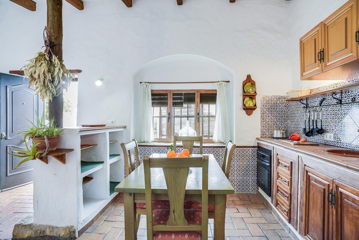 Casa de pueblo, renovada con encanto, en un tranquilo patio andaluz del centro historico.Cuenta con cocina totalmente equipada, salón con cómodo diván-cama, habitación doble y baño completo. Fresco en verano por sus anchos muros y acogedor en invierno pues tiene radiador eléctrico y chimenea. Desde el patio se accede a la terraza de impresionantes vistas. Estaré a su disposición en todo momento y será un placer ayudarles en lo que necesiten para que su estancia sea cinco estrellas ¡Bienvenidos!