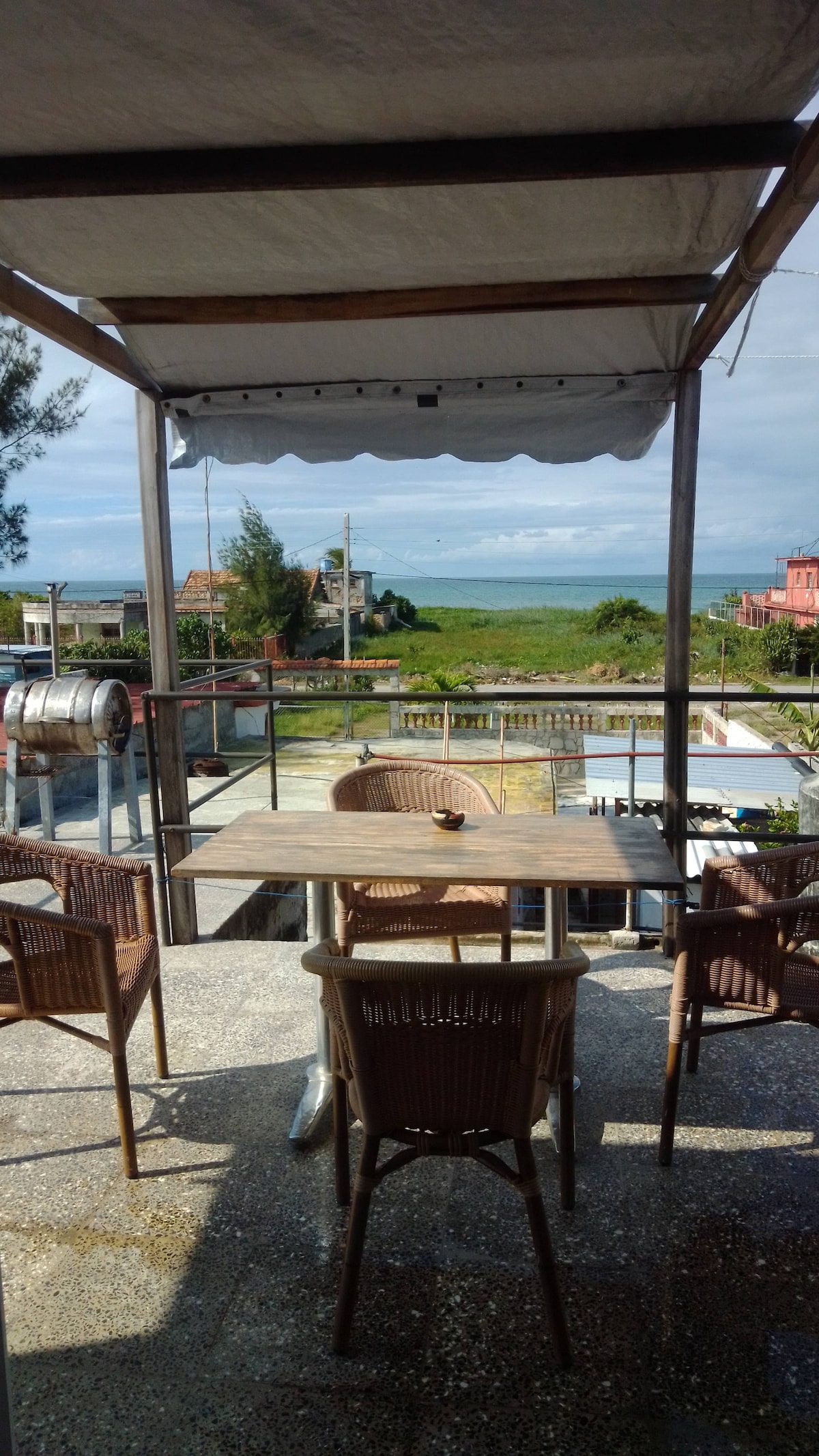 Pequeño apartamento independiente en la planta alta de nuestra casa localizado a 50 metros de la playa. Tiene una confortablehabitación con aire acondicionado, baño privado una pequeña cocina y una pequeña terraza. La casa tiene también una terraza de uso compartido en la azotea . SI USTED VA A SOLICITAR UNA RESERVACIÓN O HACER UNA CONSULTA POR FAVOR PRIMERO LEA LAS REGLAS DE LA CASA INCLUYENDO LAS REGLAS ADICIONALES.