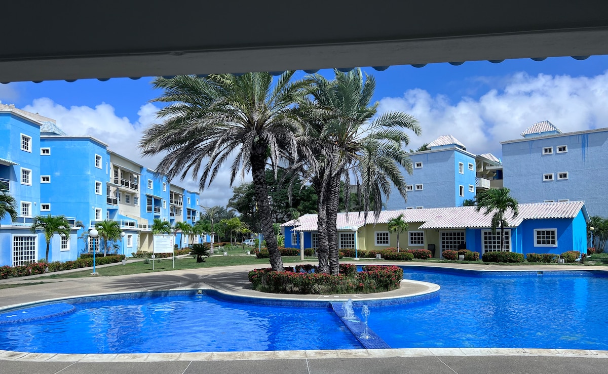 Este hermoso apartamento te ofrece comodidad y estilo después de un día de sol y mar: El edificio tiene acceso directo a la playa, así que puedes bajar y disfrutar del mar en segundos, luego refrescarte en la piscina. La sala tiene una cómoda cama y una hamaca de sentarse que a todos les encanta. Además, al lado encontrarás un restaurante francés y otro para desayunar. La seguridad del complejo es excelente. Vivirás una experiencia tranquila, segura y llena de confort. Como una burbuja en Cumaná